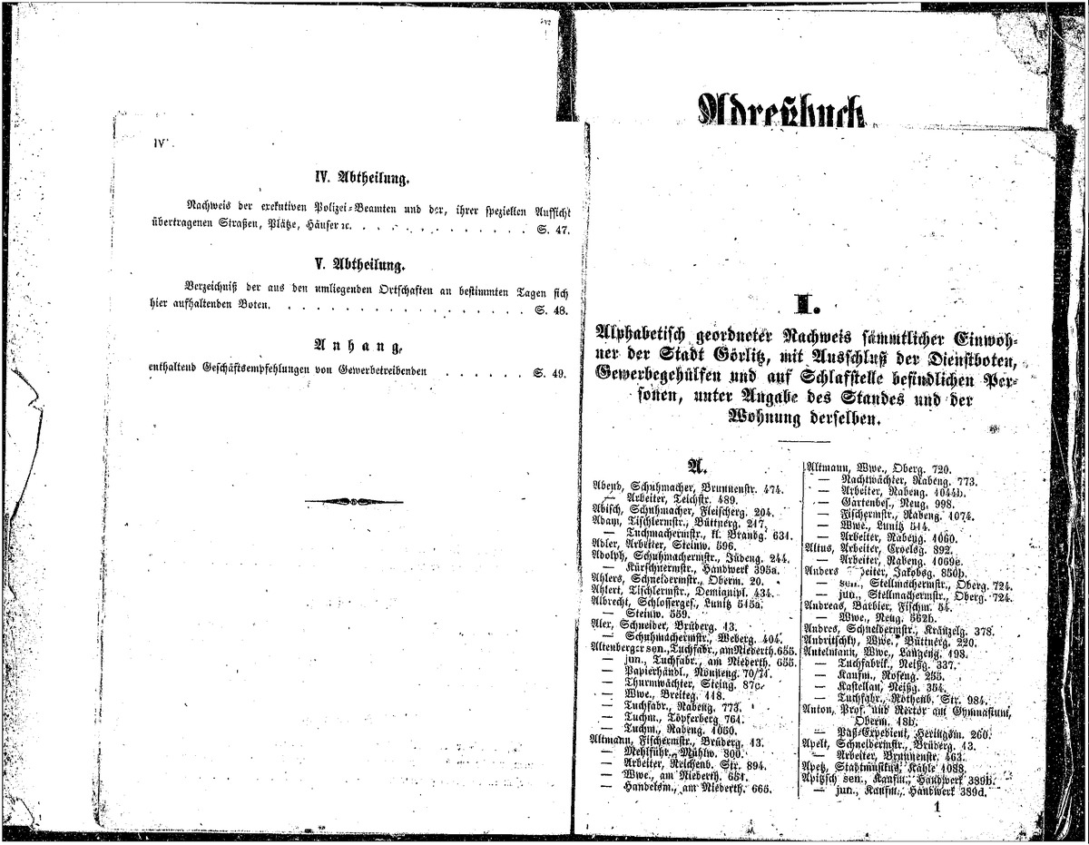 Goerlitzer Adressbuch-1850 Abschnitt 1 V W