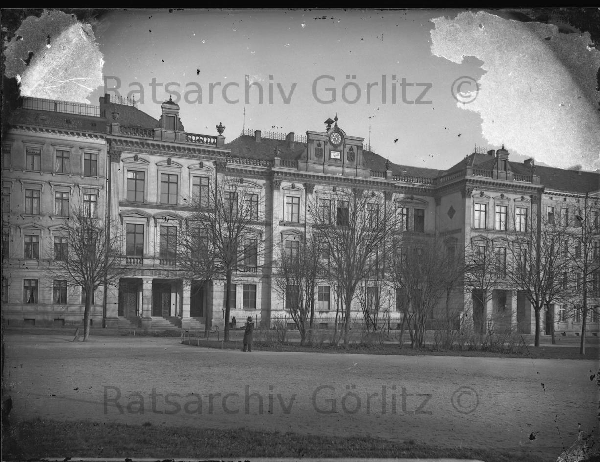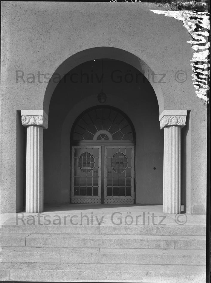 Treppe mit Tür - Ansicht Ecke Lessingstraße (Oberrealschule und Reform-Realgymnasium), 1913, Höhere Schule