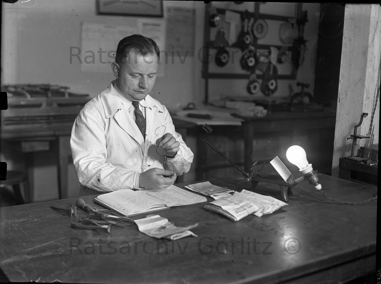 Optiker bei der Arbeit Otto Immisch Geschäft, Geschäft