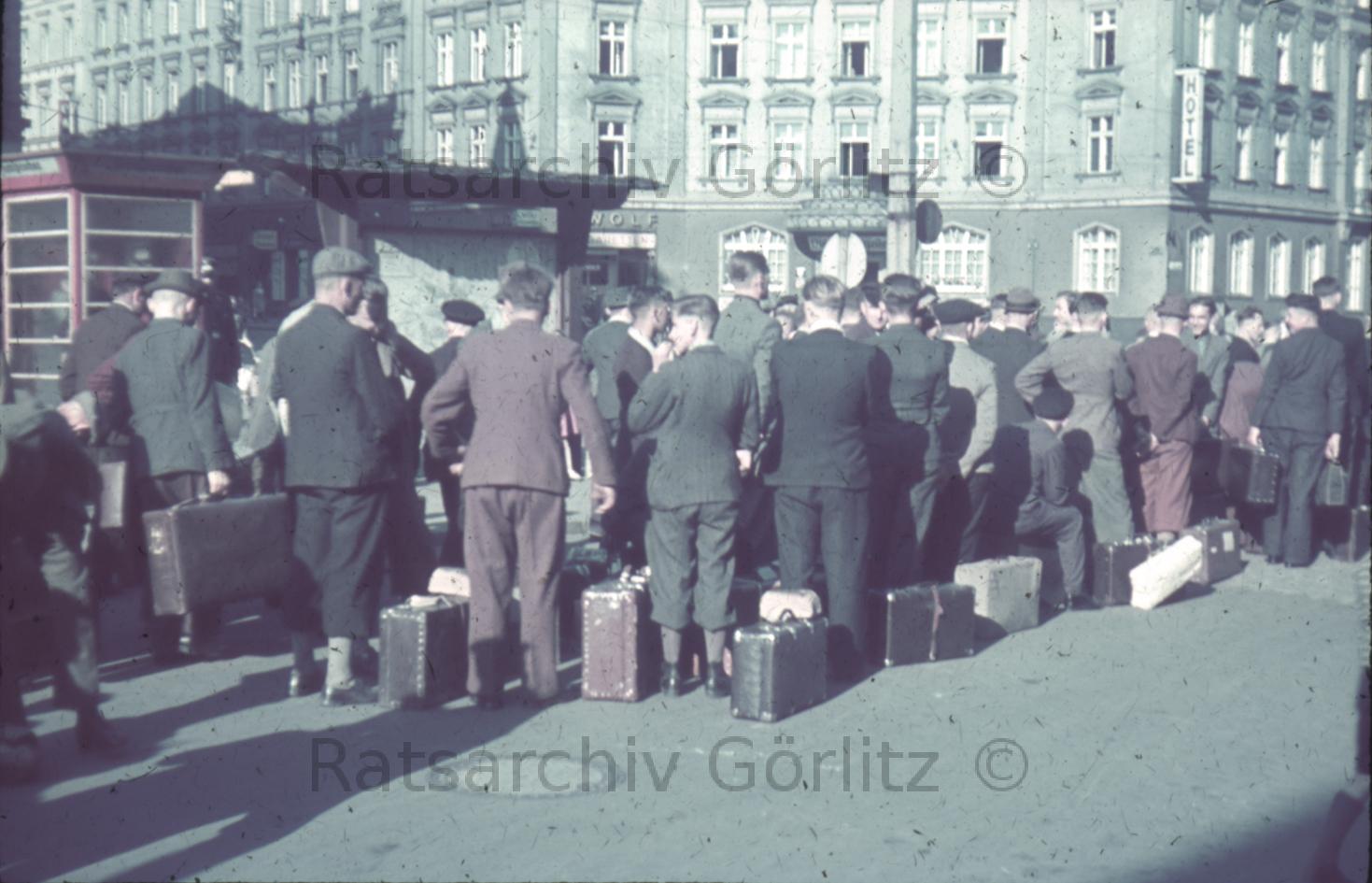 Ankunft der Einberufenen am Bahnhofsvorplatz