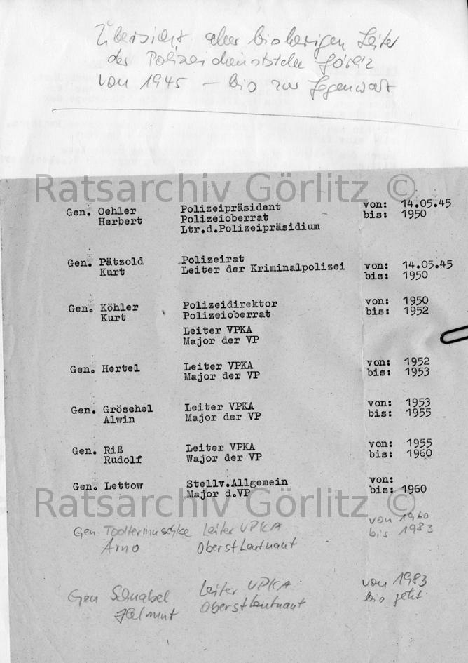 Übersicht der bisherigen Leiter der Dienststelle Görlitz