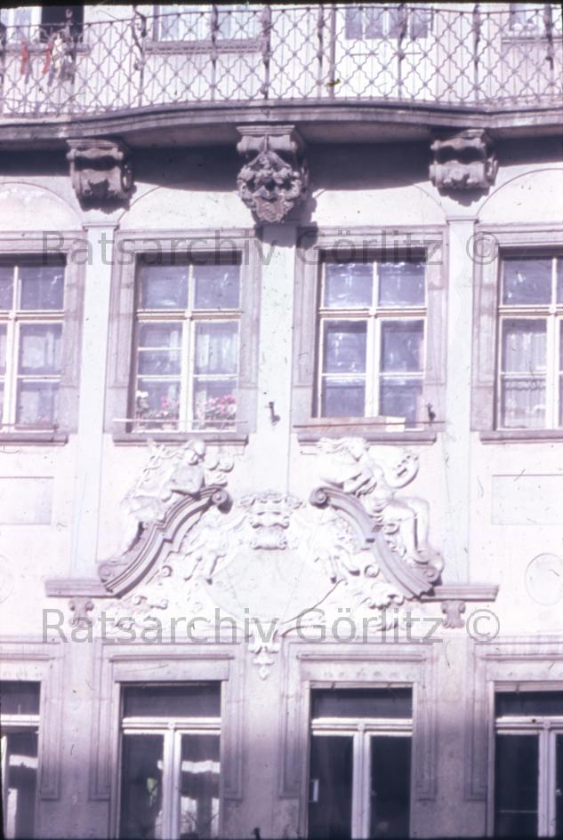 Gebäude mit Bäcker-Zunft-Wappen in Löwenberg in Schlesien