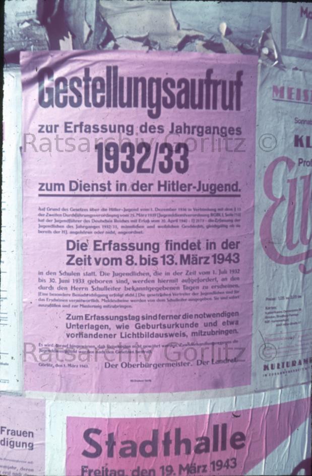 Feststellungsaufruf zur Erfassung des Jahrganges 1932/33, zum Dienst in der Hitler-Jugend