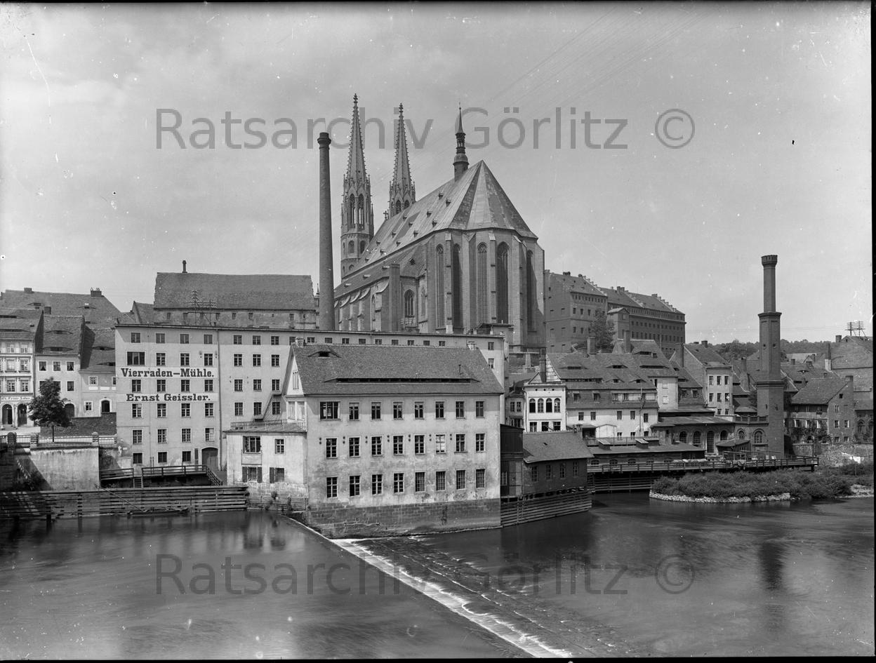 Heilig - Geist - Kirche, Neißeufer, Jacob Böhme Haus vor dem Abbruch um 1900 - Oststadt, Kirche