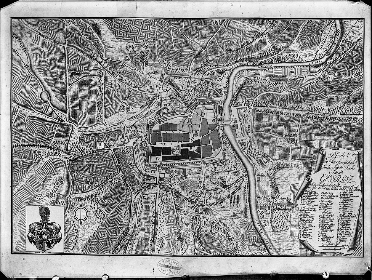 Alter Stadtplan von Görlitz, Wappen/Siegel/Plan/Münze/Urkunde