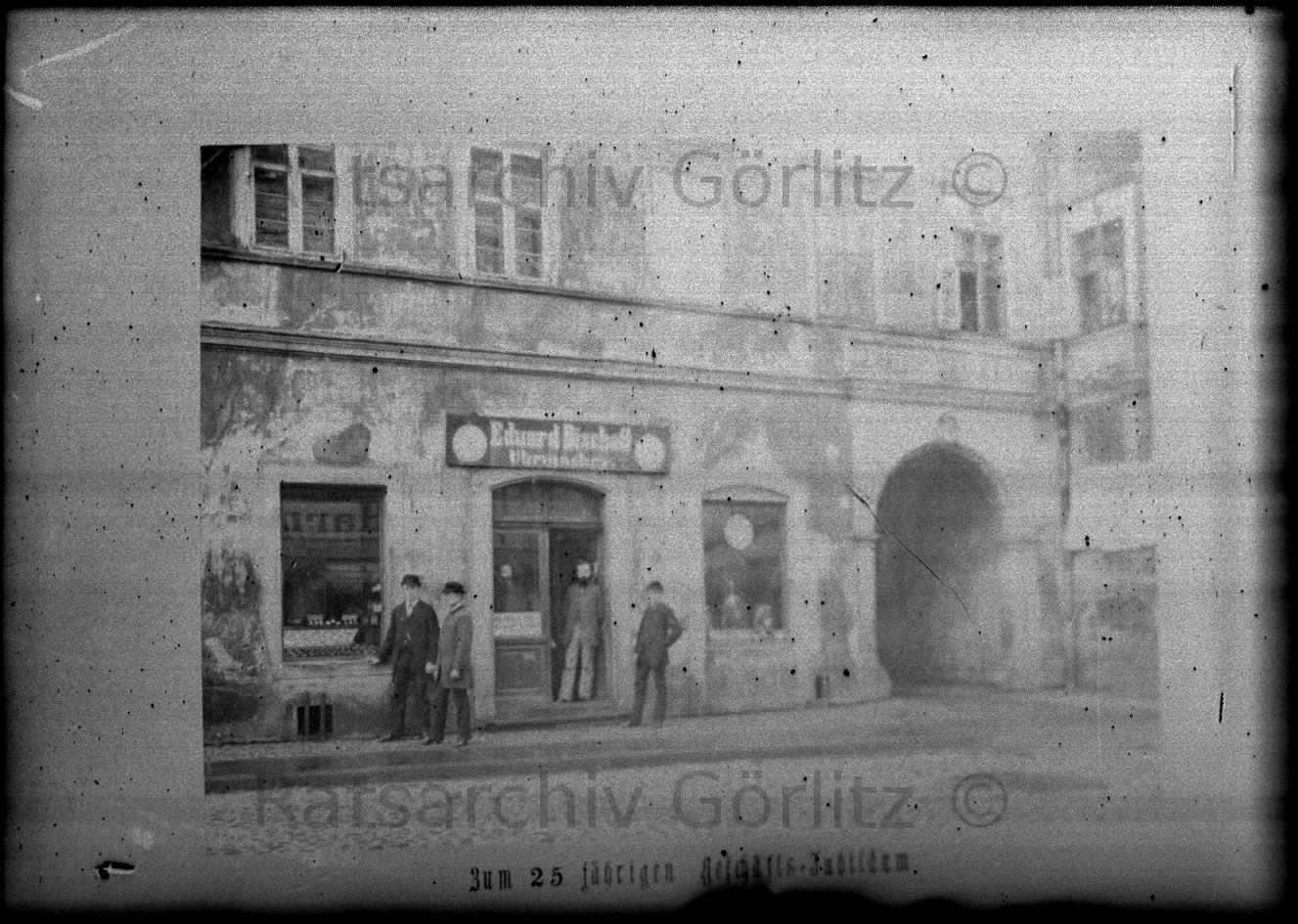 Laden von Uhrmacher Eduard Bischoff am Fischmarkt, zu 25 jährigem Geschäfts-Andenken