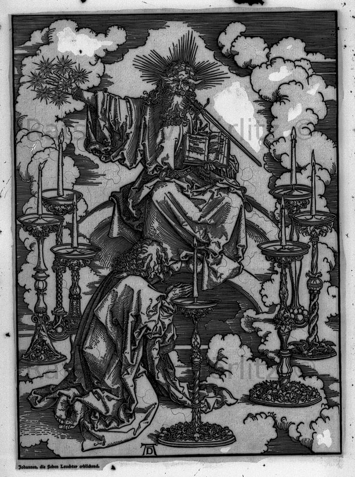 Kupferstich von Albrecht Dürer "Johannes die sieben Leuchter erblickend", Gemälde / Bild