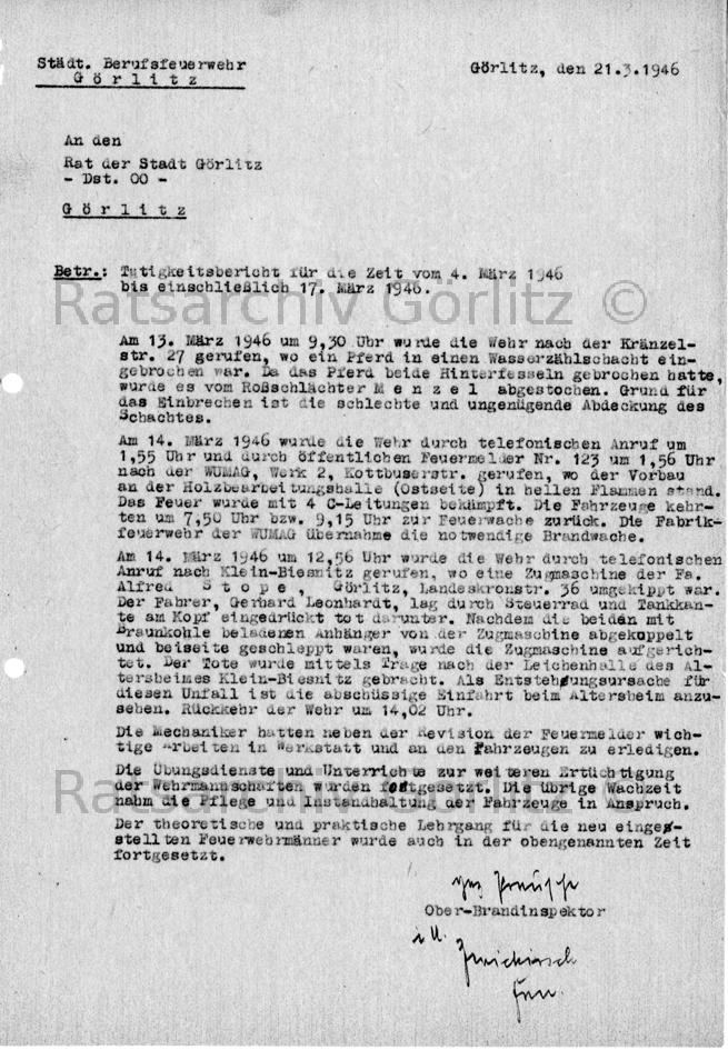 Tätigkeitsbericht Feuerwehr (Schrift)