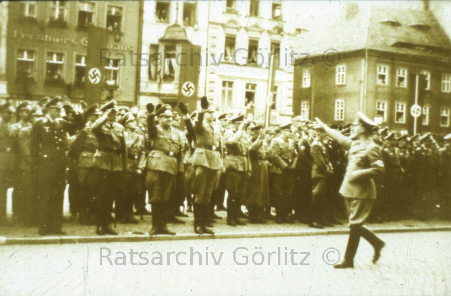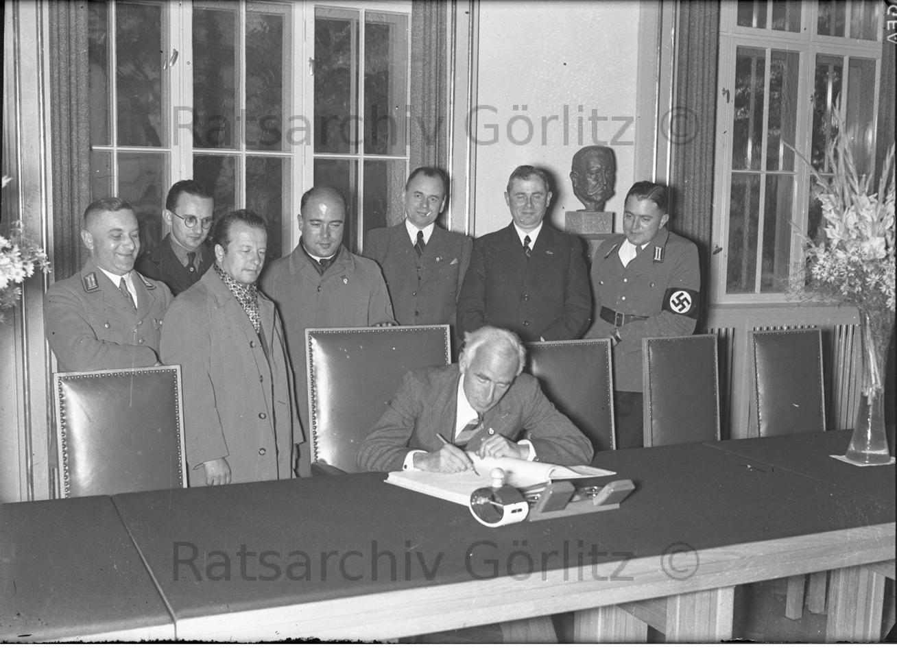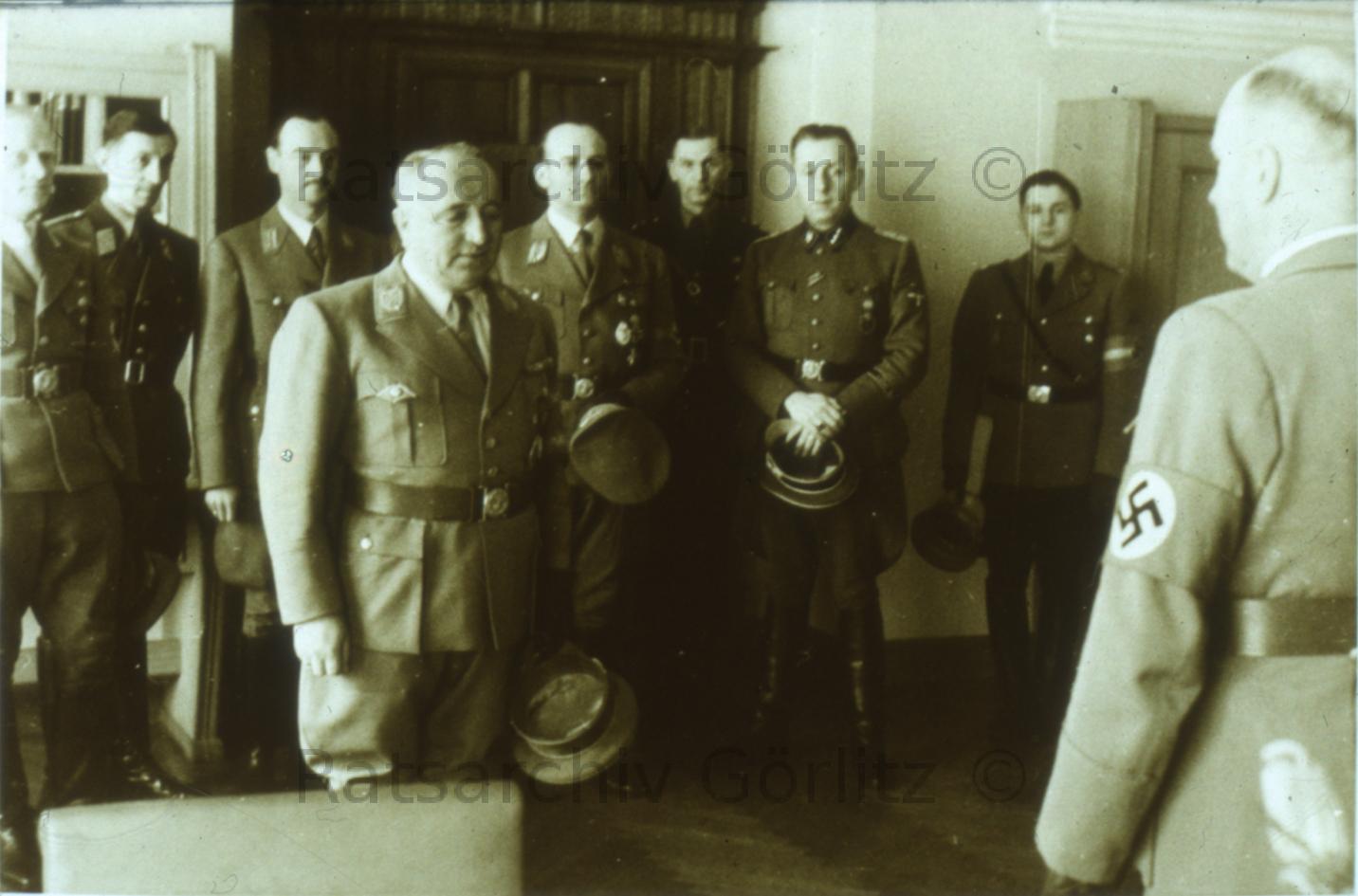 Ley (DAF)mit Gauleiter Hanke (Mitte Tür)