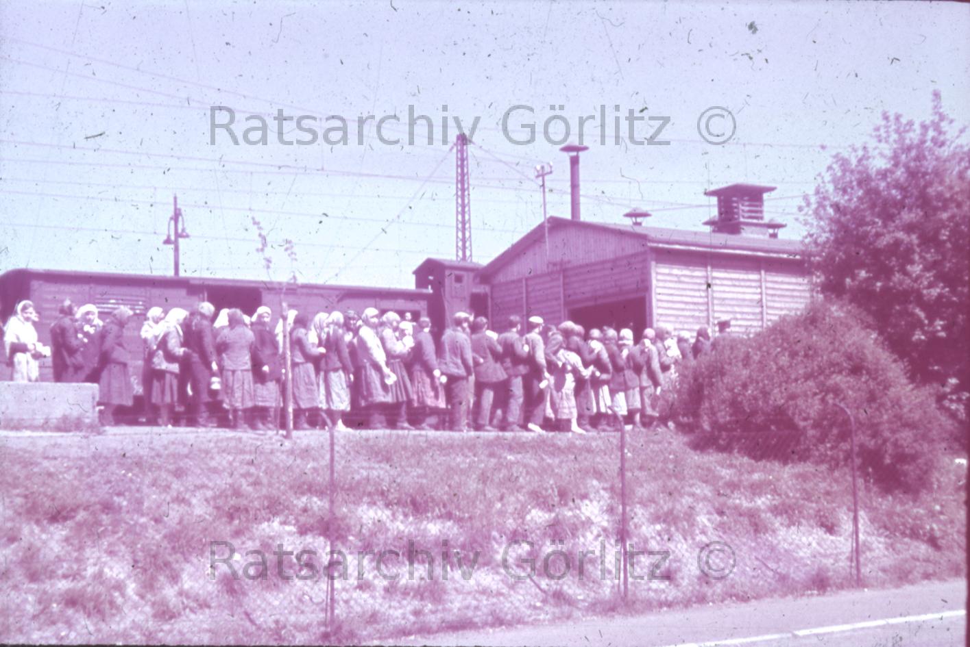 Ankunft Zwangsarbeitertransport, Ostarbeiterinnen in Güterwagen