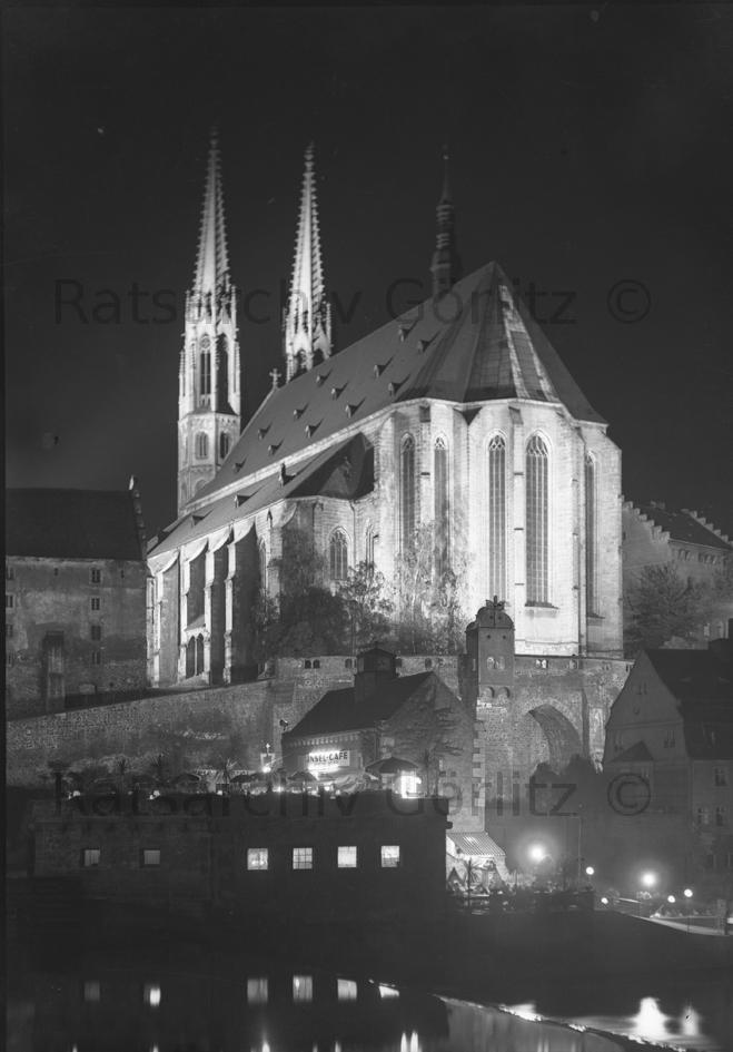 Blick zu Peterskirche beleuchtet