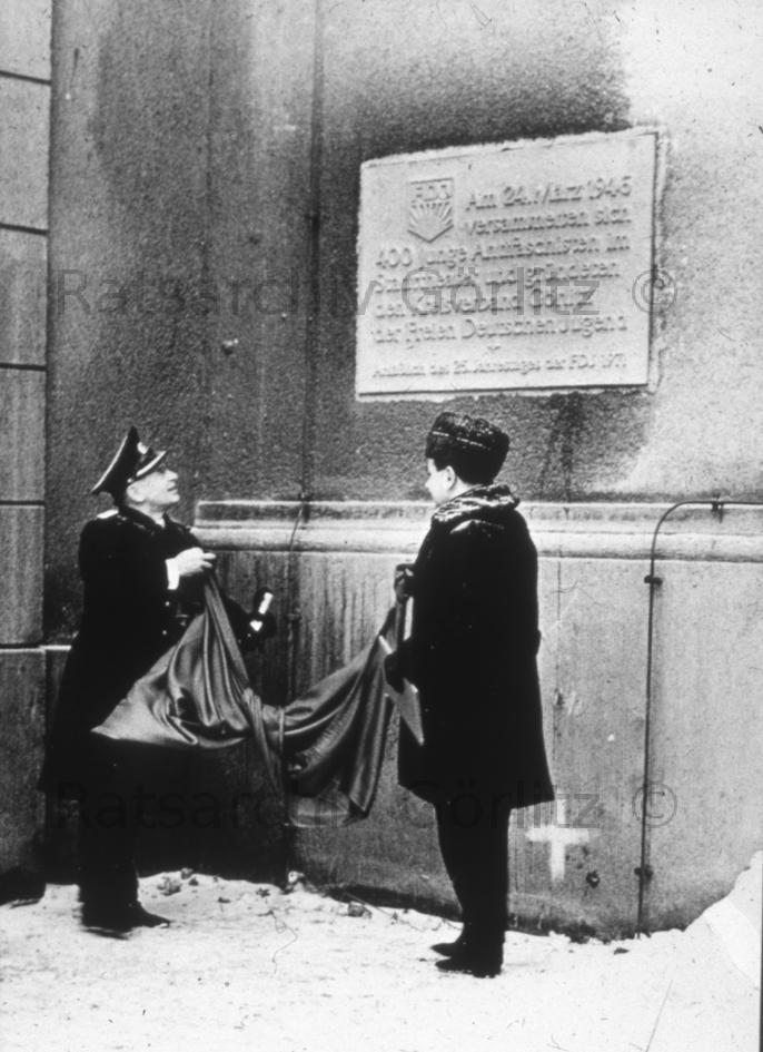 Enthüllung der Gedenktafel am Stadttheater, 25 Jahre FDJ