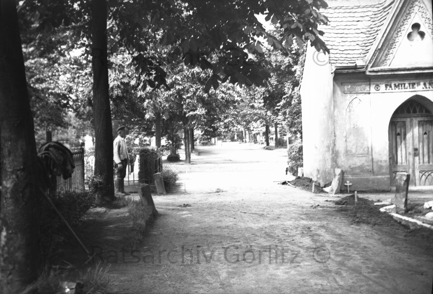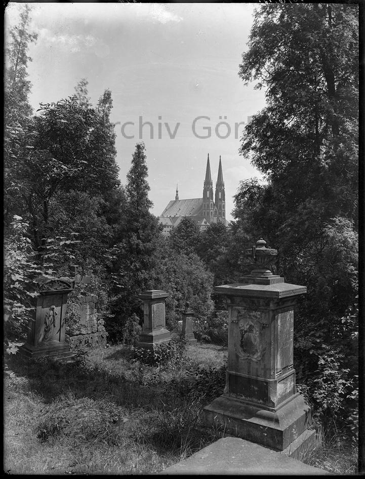 Auf dem Nikolaifriedhof mit Blick zur Peterskirche, 1917, Friedhof