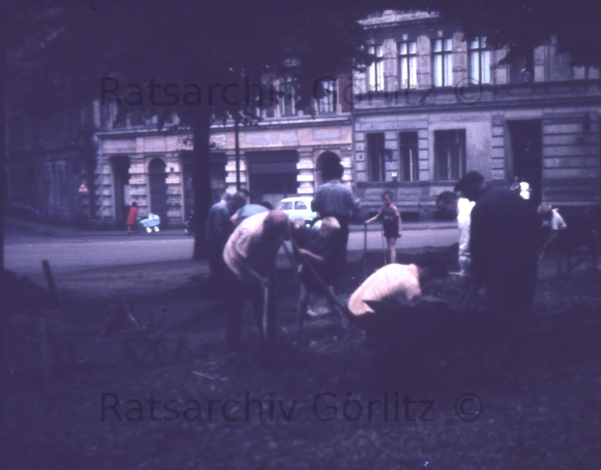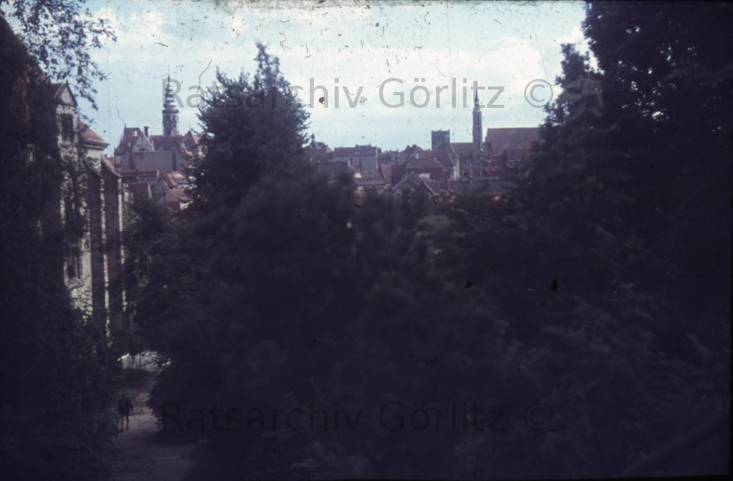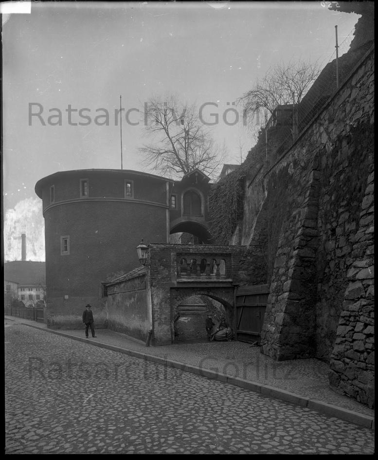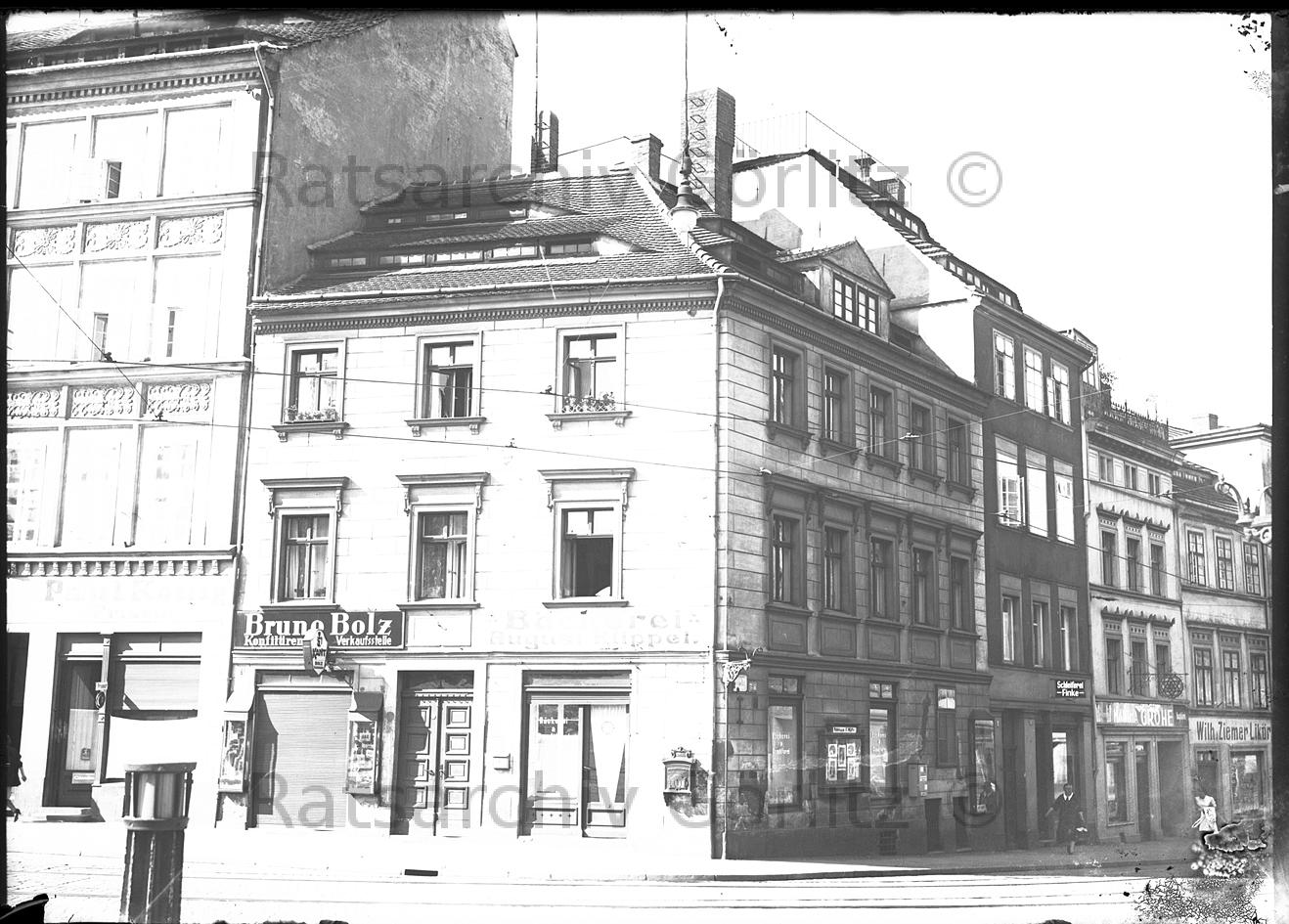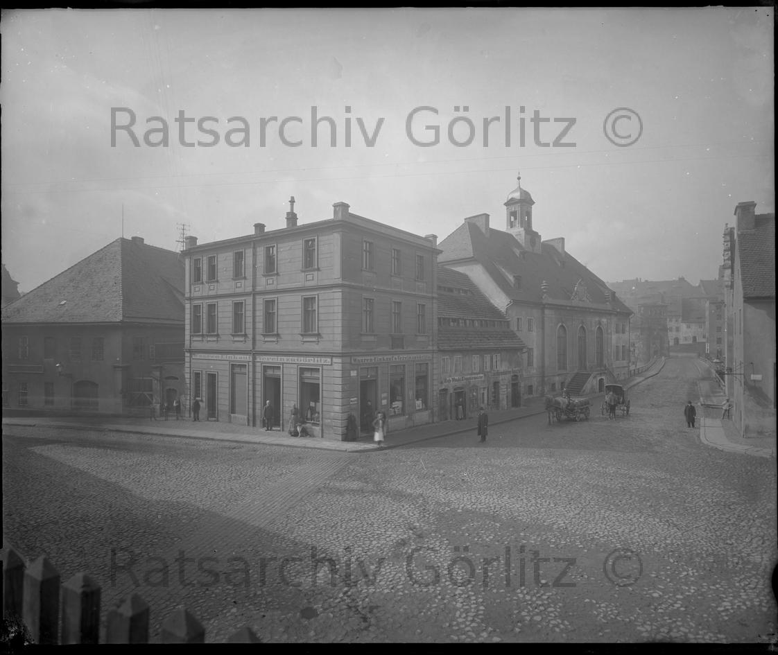 Breslauer Straße - alte Neißehospitalkirche und Jakob-Böhme-Haus um 1900, Kirche