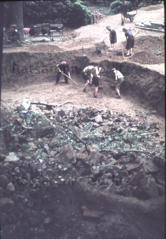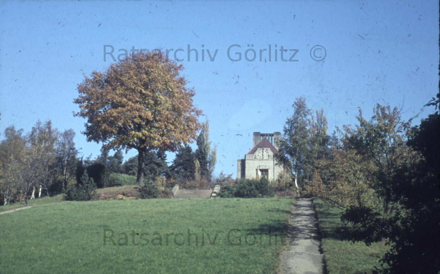 Stadt, Ölberg, Ölberggarten, Blick zum Krematorium