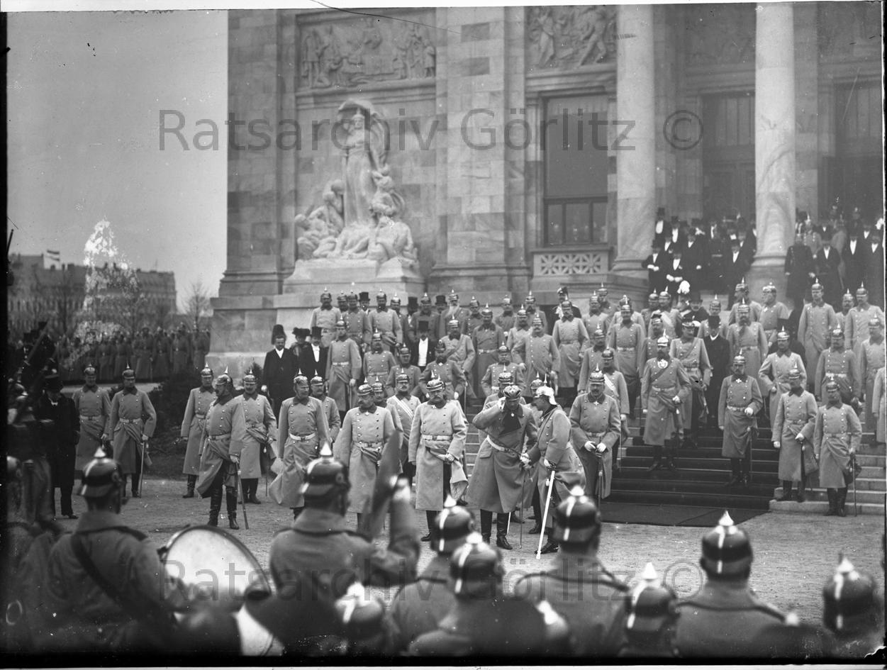 Aufmarsch zum Besuch des Kaiser Wilhelm II. in Görlitz - Anlaß Einweihung der Ruhmeshalle am 28.11.1902, Parade