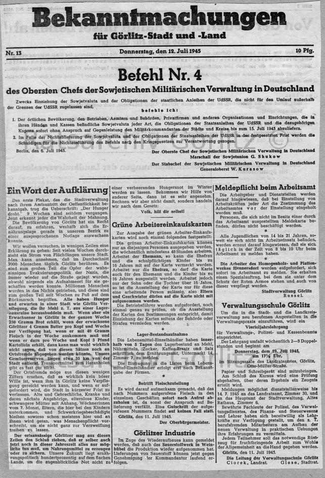 Bekanntmachungen Befehl Nr. 4 (Schrift)