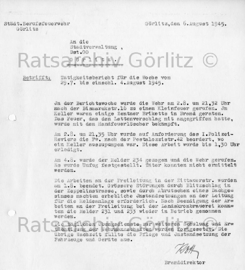 Tätigkeitsbericht Feuerwehr (Schrift)