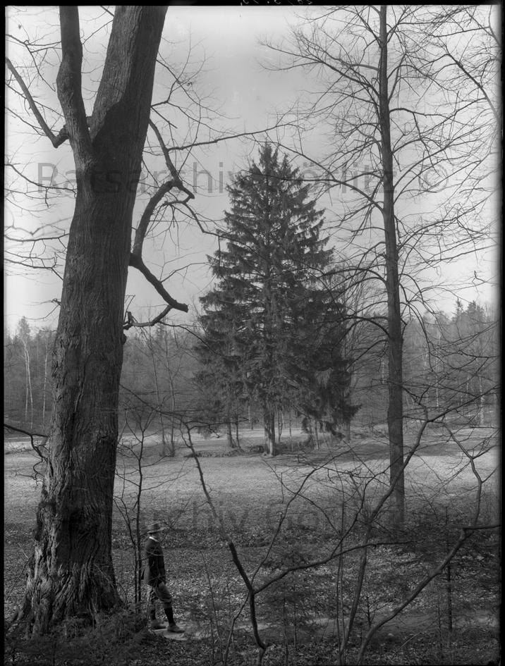 Unbekannter Park mit Nadelbaum1913