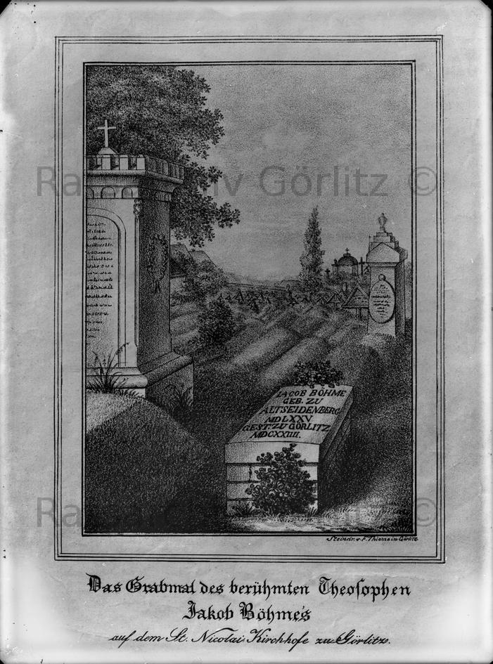 Zeichnung: Das Grabmal von Jakob Böhme auf Nikolaifriedhof zu Görlitz, Gemälde / Bild