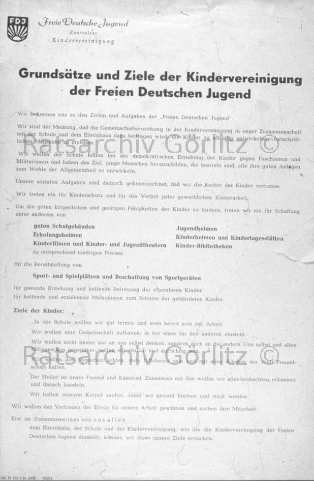 Grundsätze und Ziele der Kindervereinigung der FDJ