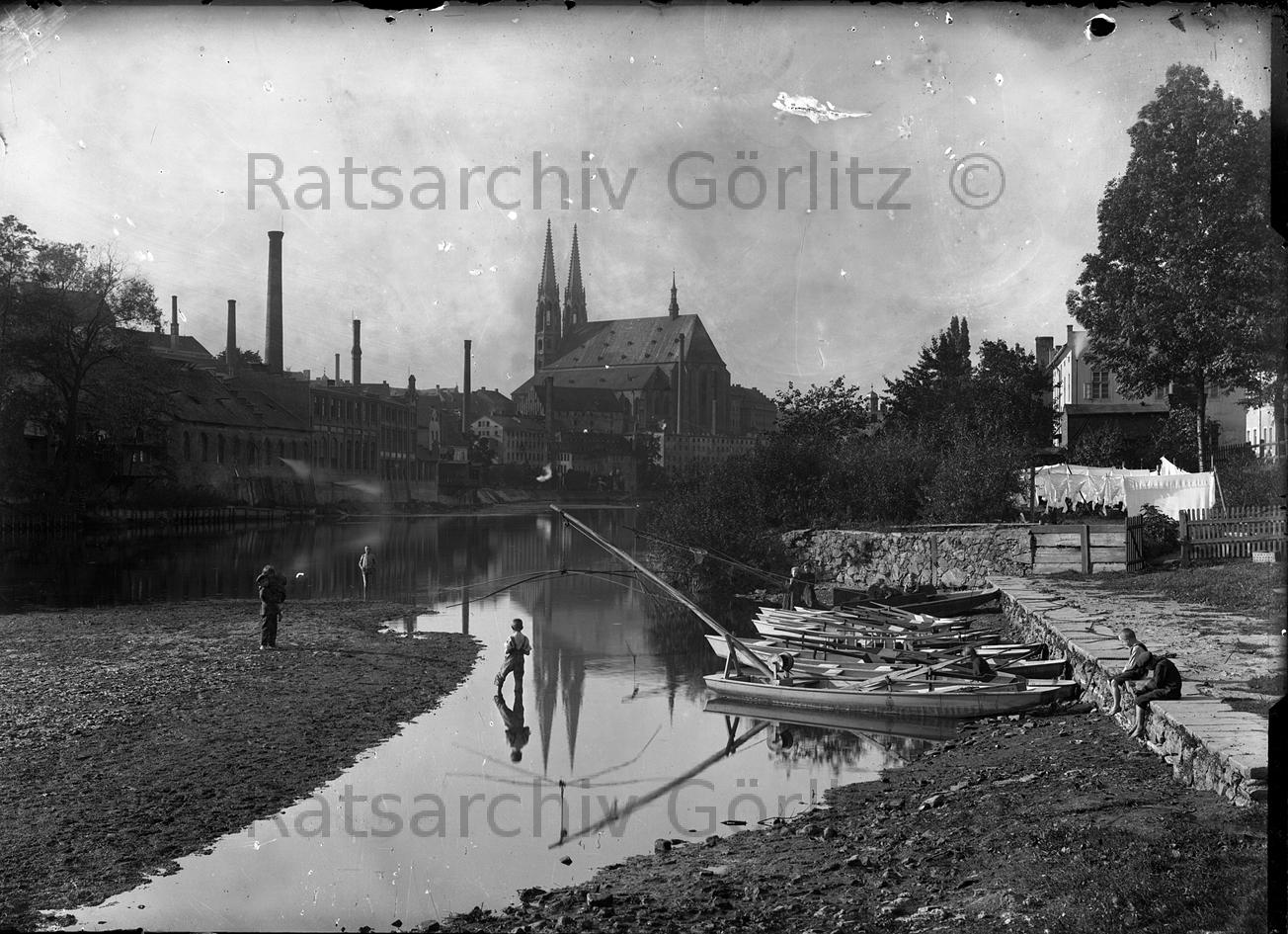 Neißeufer von Ost nach West, Blick auf Peterskirche, Kirche