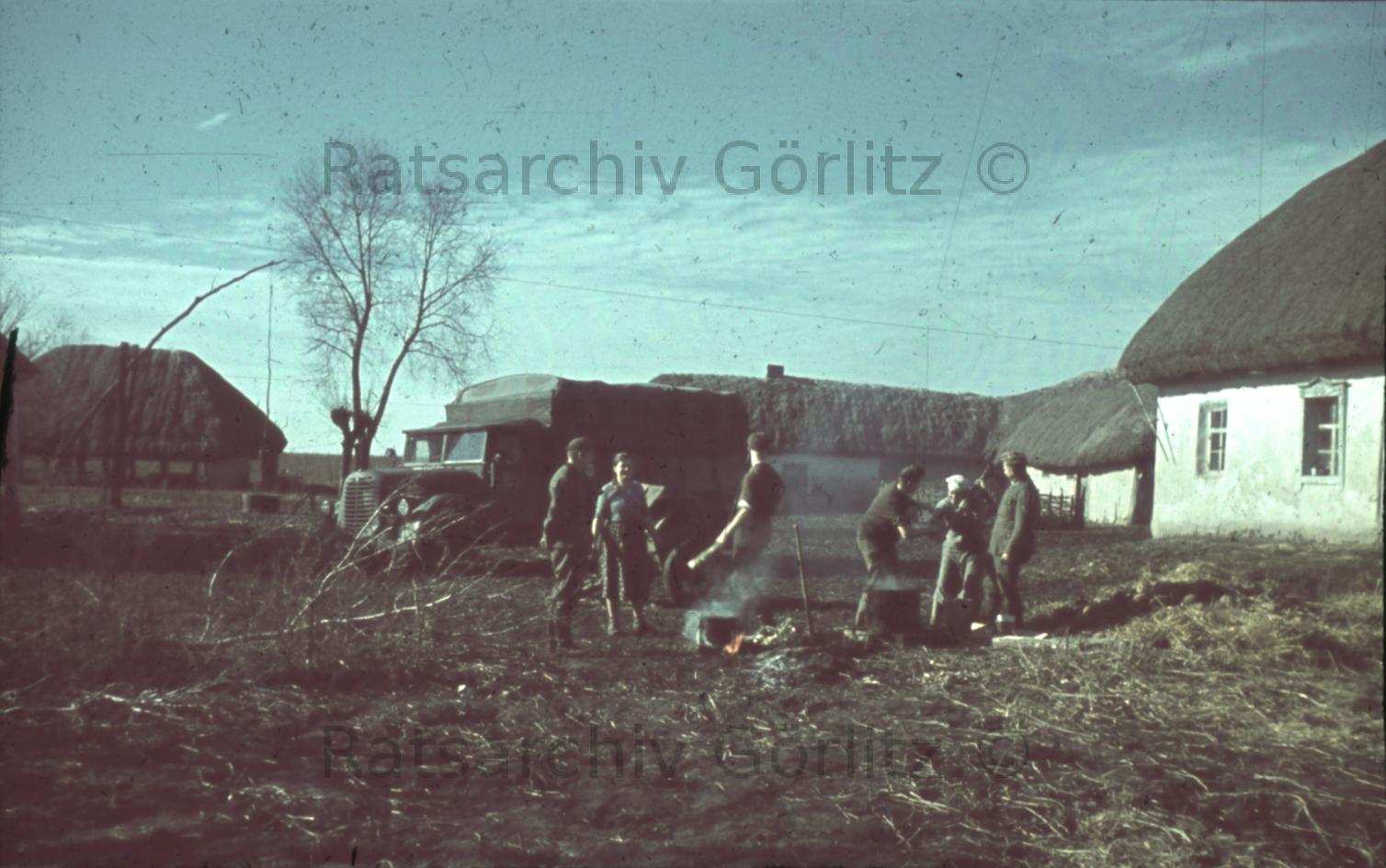 Auf dem Marsch, Soldaten auf dem Bauernhof (beschaffen von Verpflegung)
