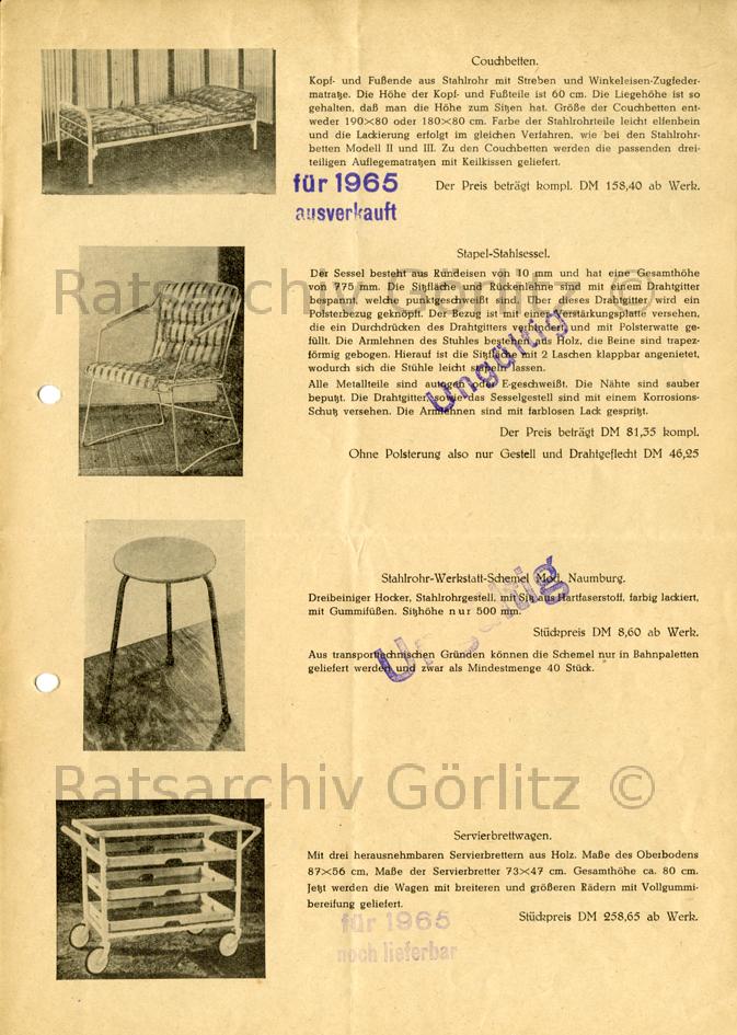 Preisliste für Metall- und Holzmöbel, Richard Harmann Halle