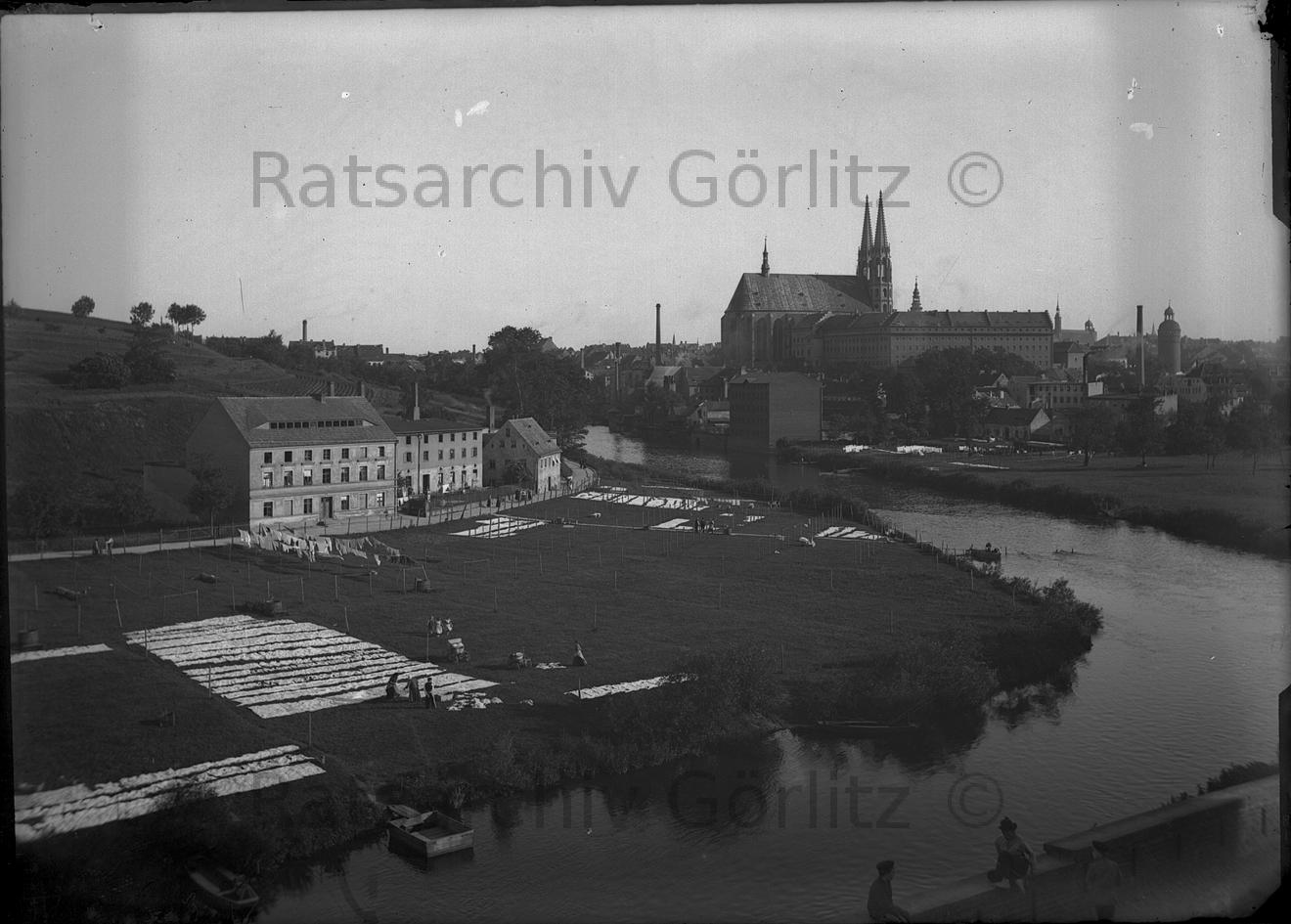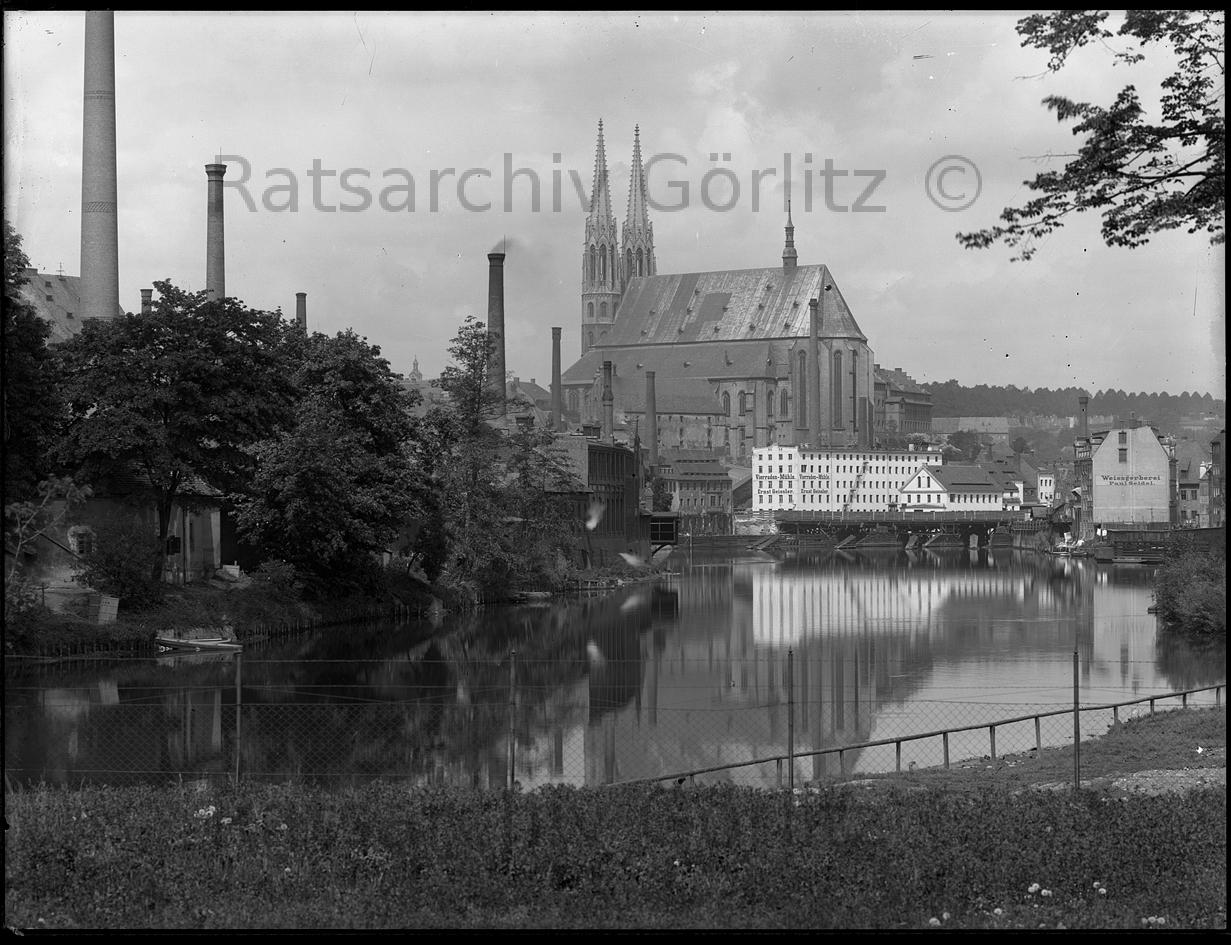 Blick zur Peterskirche, Neiße mit Bleichwiesen, Neiße