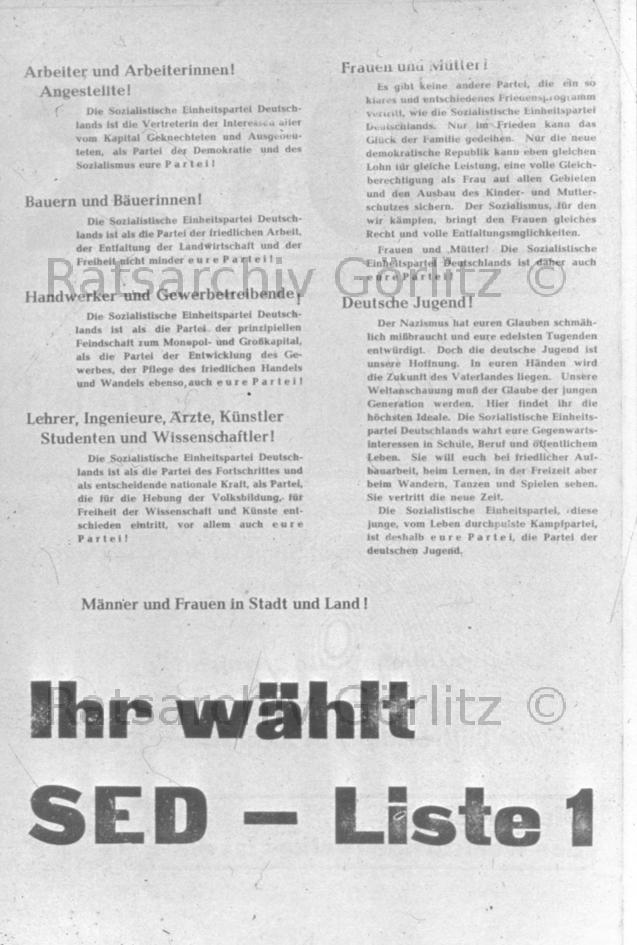 Wahlzeitung der SED, Ihr wählt SED - Liste 1