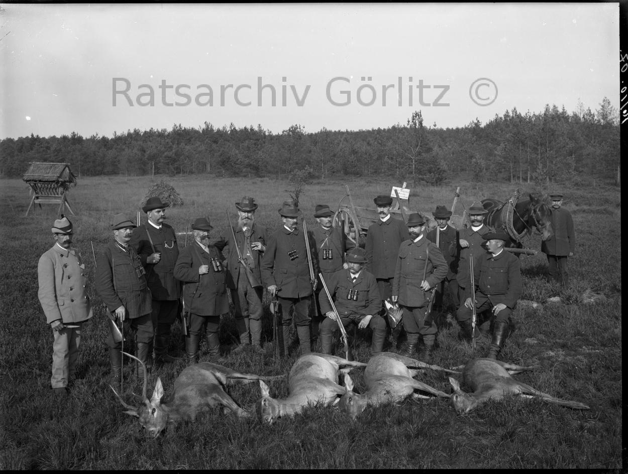 Unbekannter Wald Jägergruppe mit erlegten Wild1907