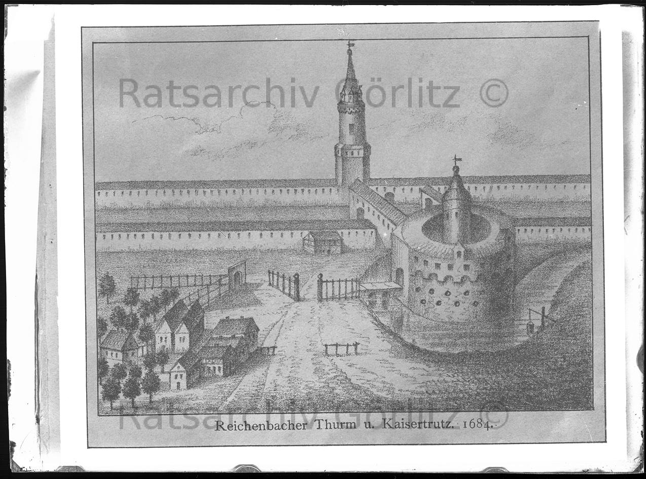 Zeichnung: Reichenbacher Turm und Kaisertrutz 1684, Gemälde/ Bilder