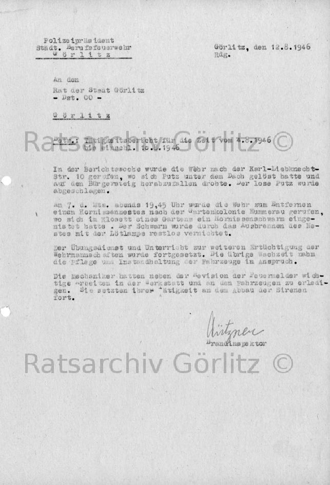Tätigkeitsbericht Feuerwehr (Schrift)