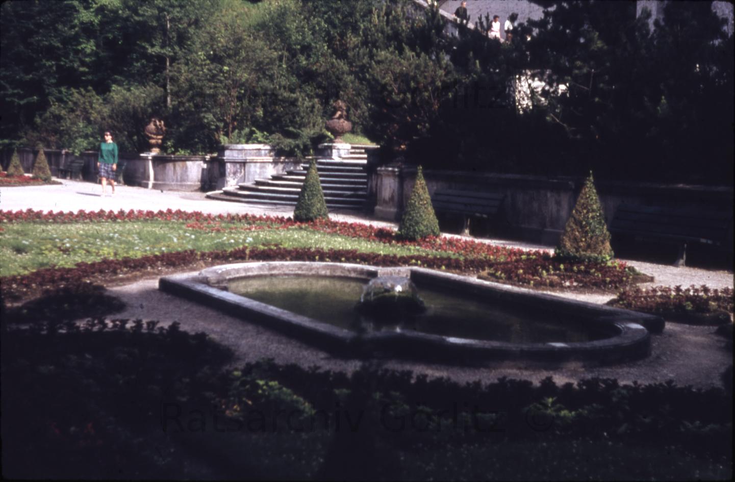 Stadt, Goldfischteich, Blick zum Pilz