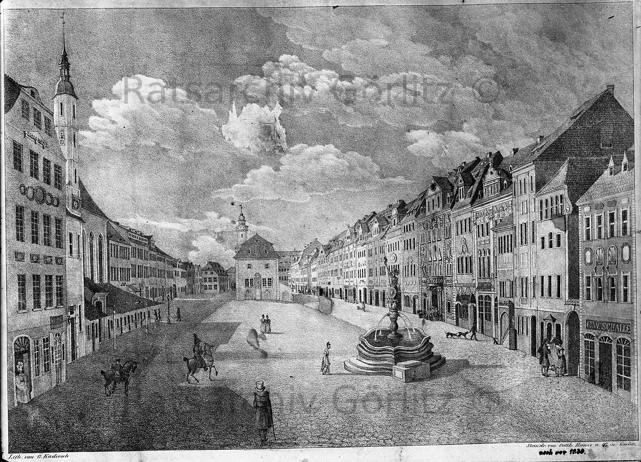 Lithographie: Obermarkt mit Brunnen, Gemälde / Bild