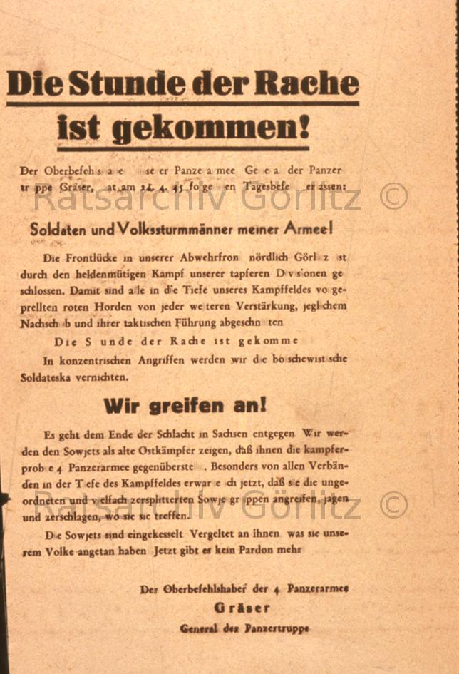 Die Stunde der Rache ist gekommen, Tagesbefehl des Oberbefehlshabers der 4 PZA