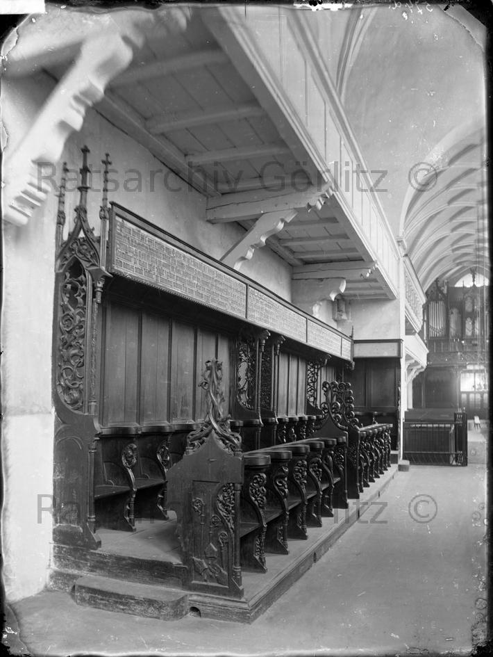 Klosterkirche innen Mönchsgestühl, Inschrift, Nordseite, Kirche