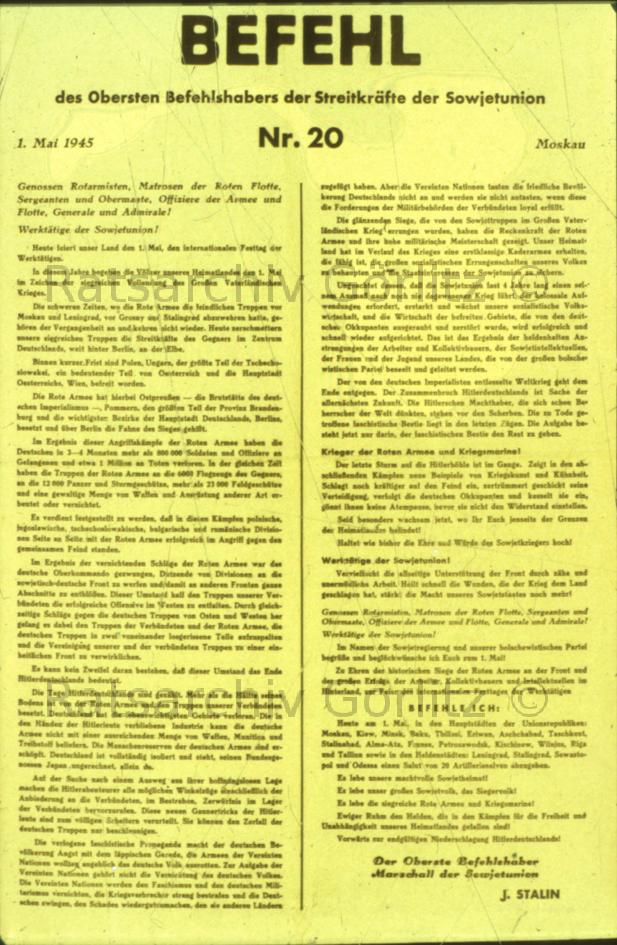 Befehl des Obersten Befehlshabers der Streitkräfte der Sowjetunion Nr. 20, Aufruf an die kämpfende Truppe
