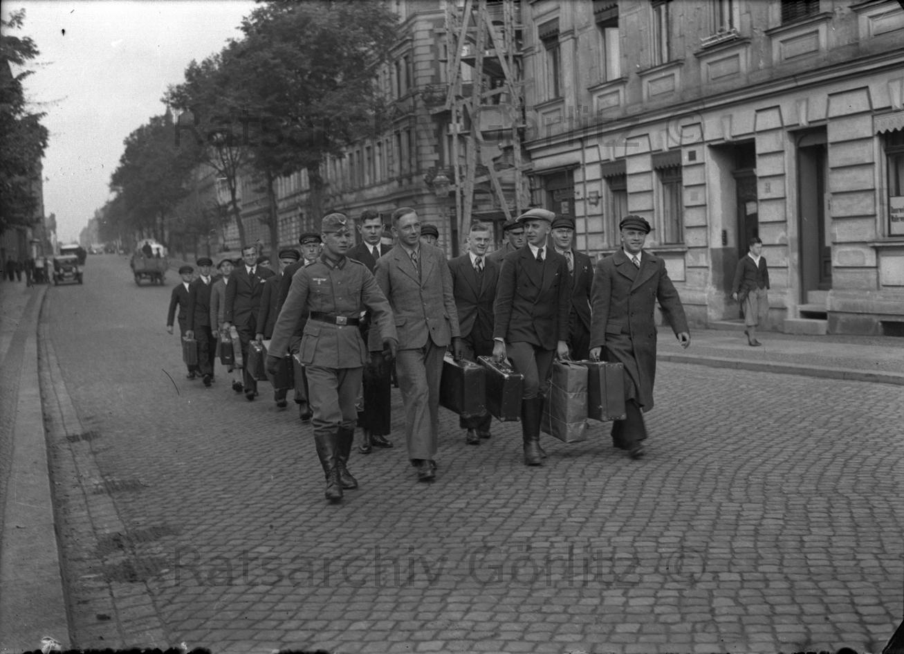 Rekruten auf dem Weg zur Kaserne, Bahnhofstraße