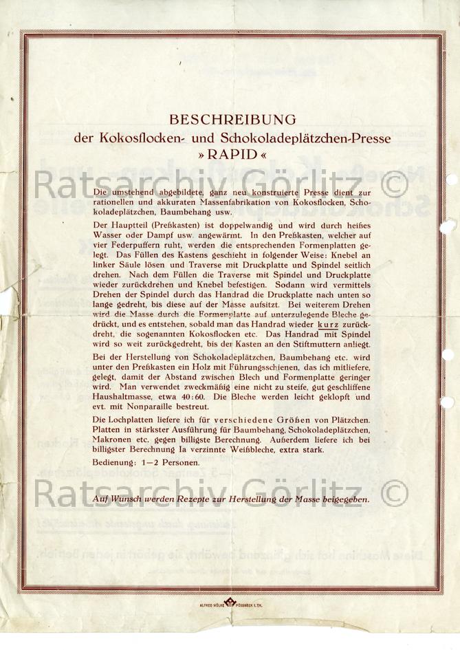 Dessert-Packerei, Betriebschronik.- Frau Kolditz