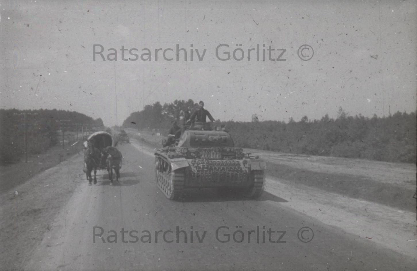 Auf dem Marsch, mit Panzern