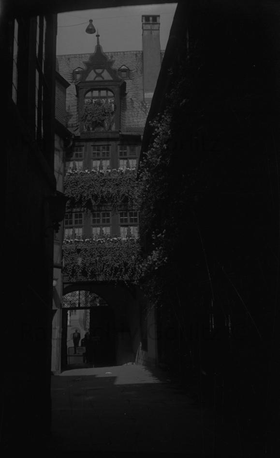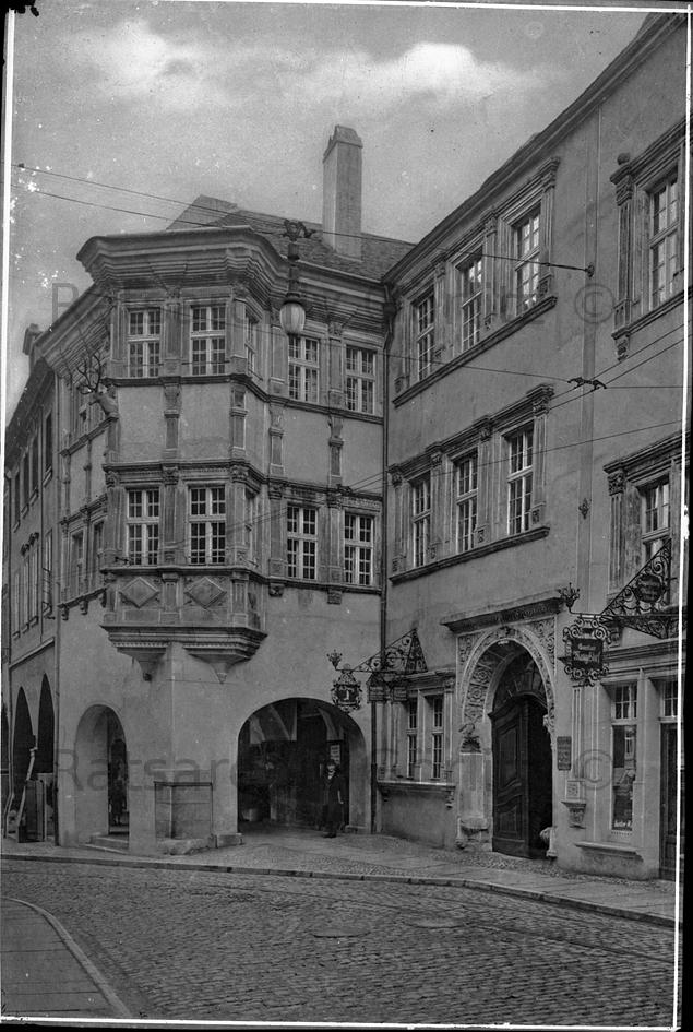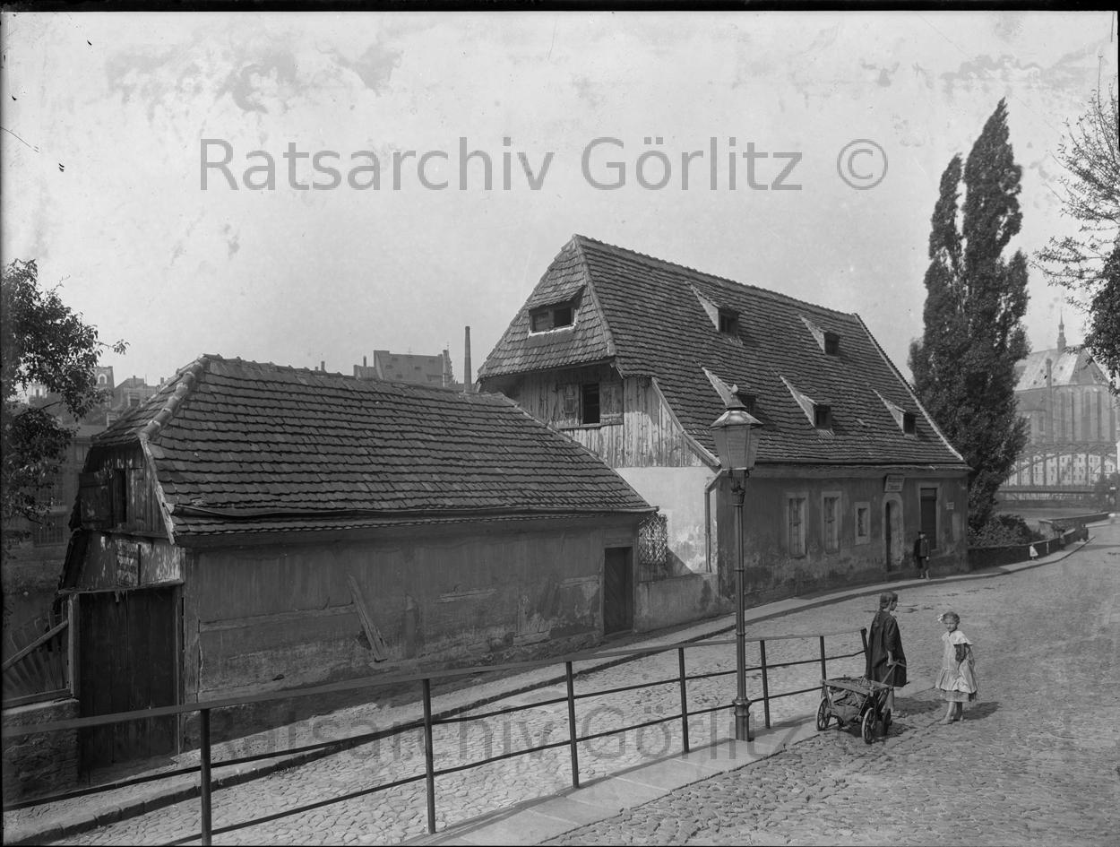 Blick vom Aufgang zum Scultetushof (Scultetusweg) nach der Weißgerberei Prager Straße 105, Straße