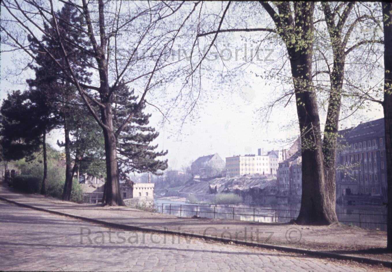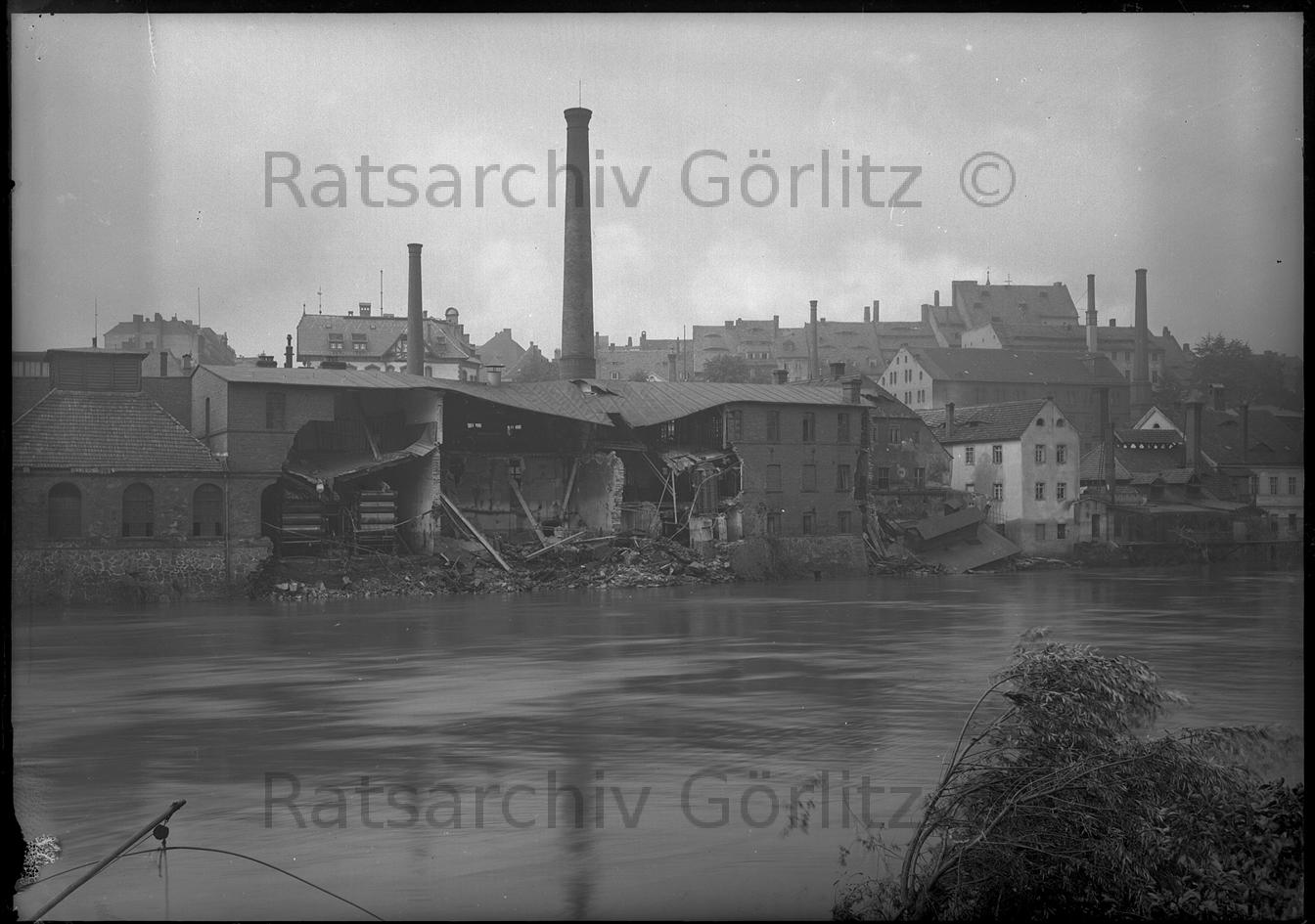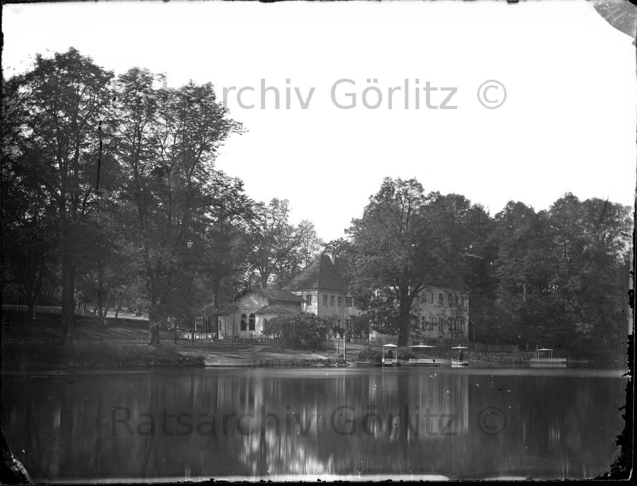 Altes Schloßhaus an der Neiße von Prager Straße aus gesehen - Schützenhaus an der Neiße um 1890, Neiße