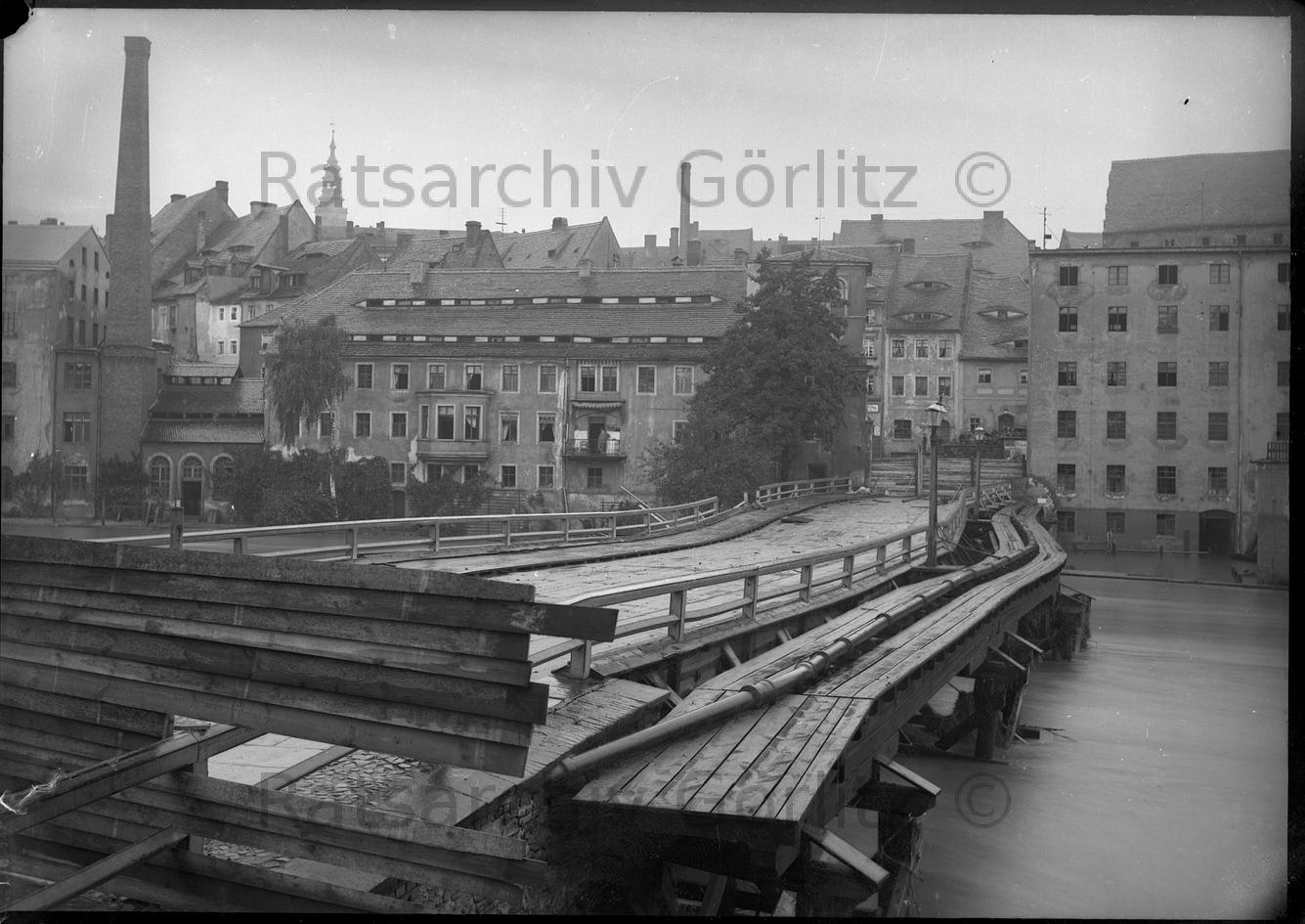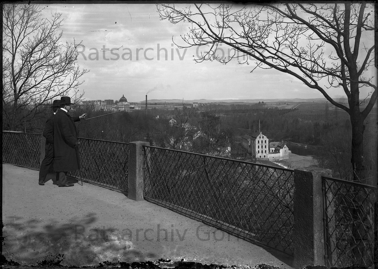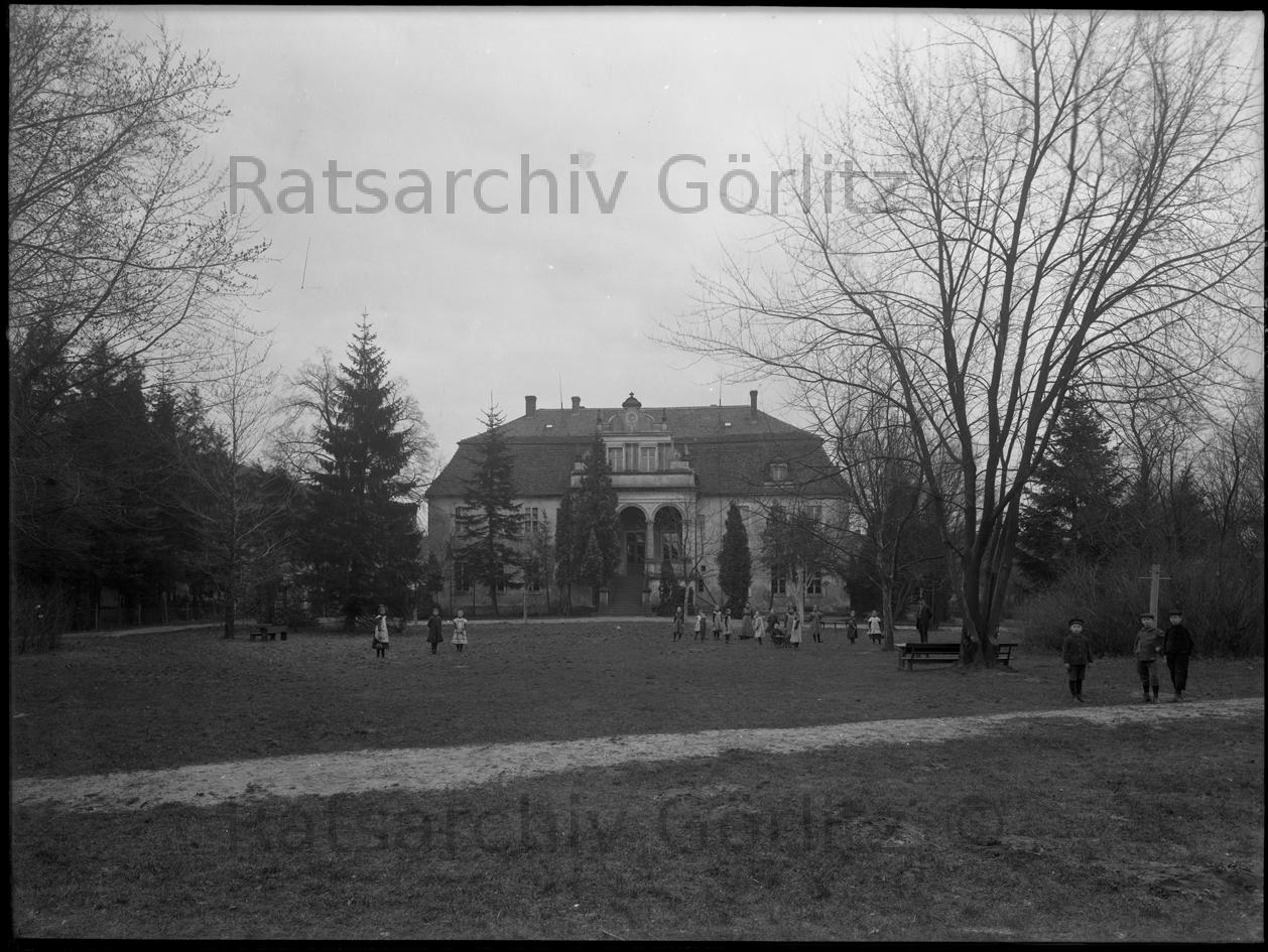 Altes Schloßhaus an der Neiße von Prager Straße aus gesehen - Schützenhaus an der Neiße um 1890, Neiße