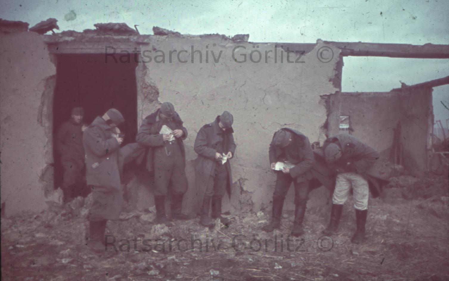 Auf dem Marsch, Soldaten auf dem Bauernhof (beschaffen von Verpflegung)