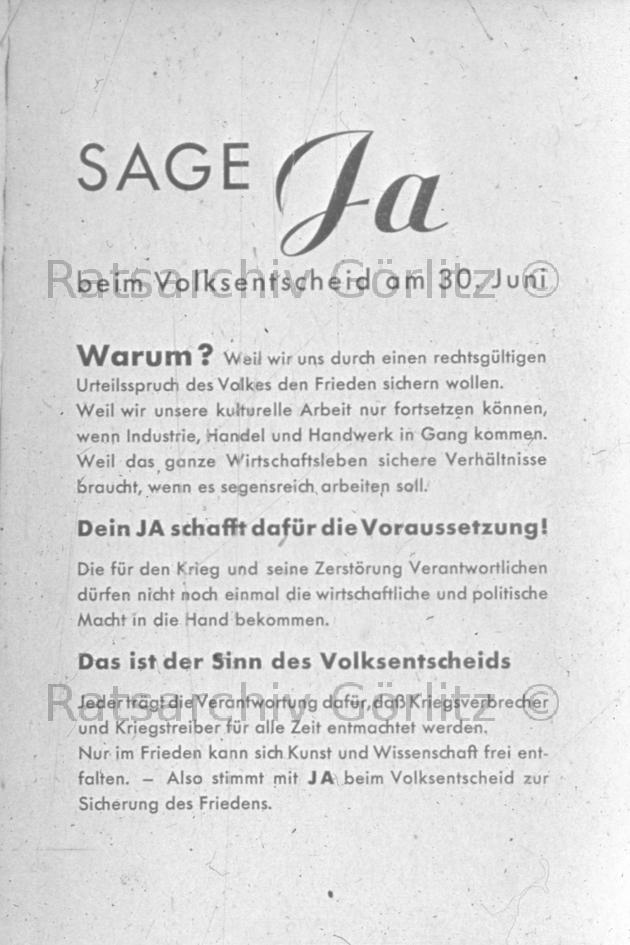 Sage Ja, Volksentscheid für den Frieden