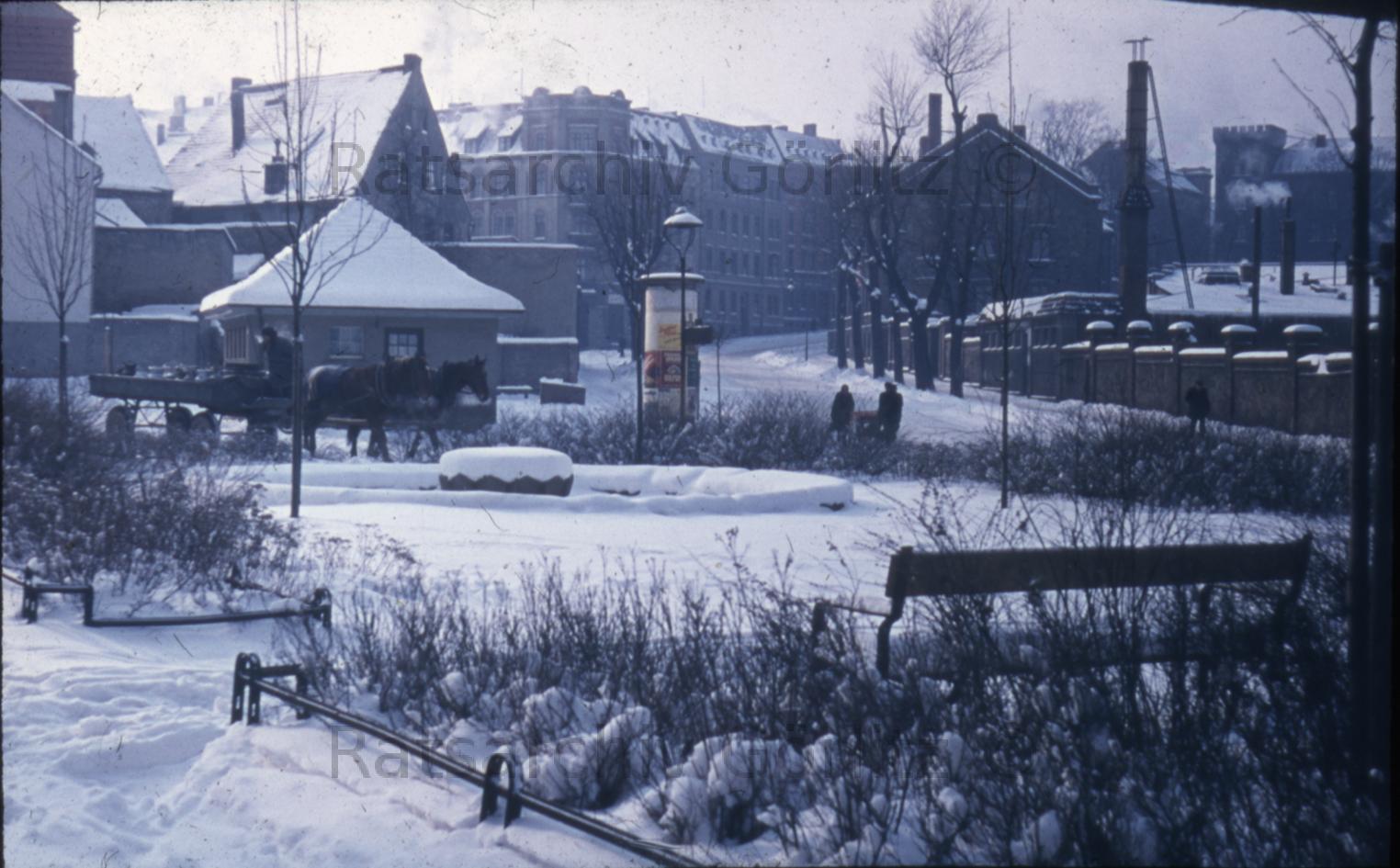 Stadt, Anlage am Nikolaiturm, im Winter