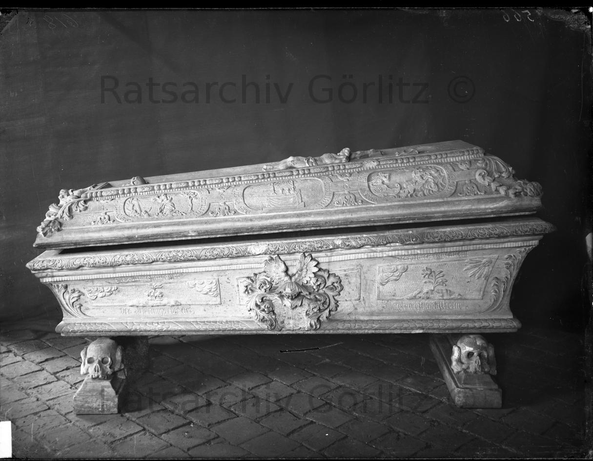 Steinsarg von Nostitz in Peterskirche, jetzt Gedenkhalle rechte Seite, Kirche