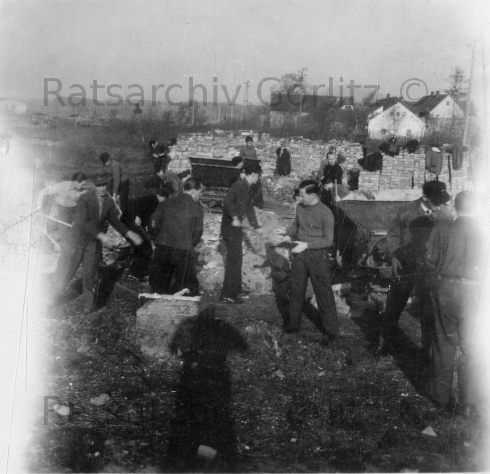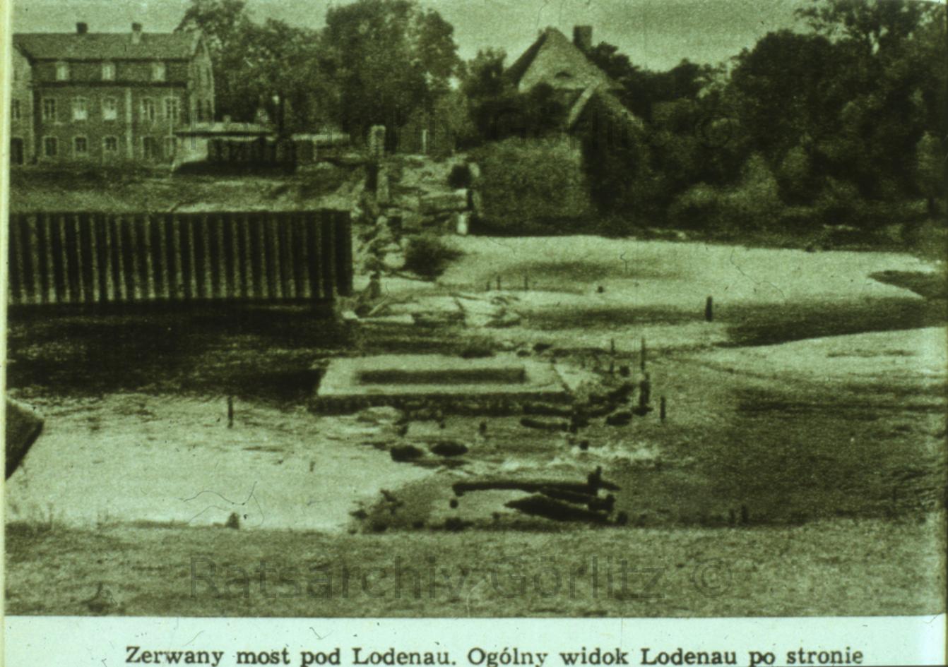 gesprengte Neißebrücke und Panzersperre, nach der Einnahme durch 7. poln. I.D.