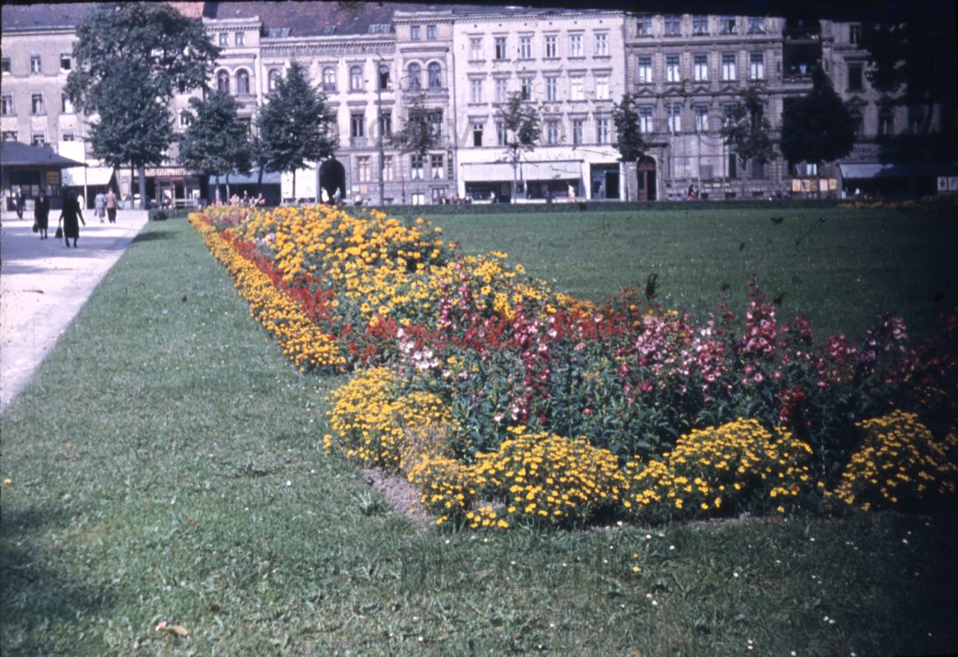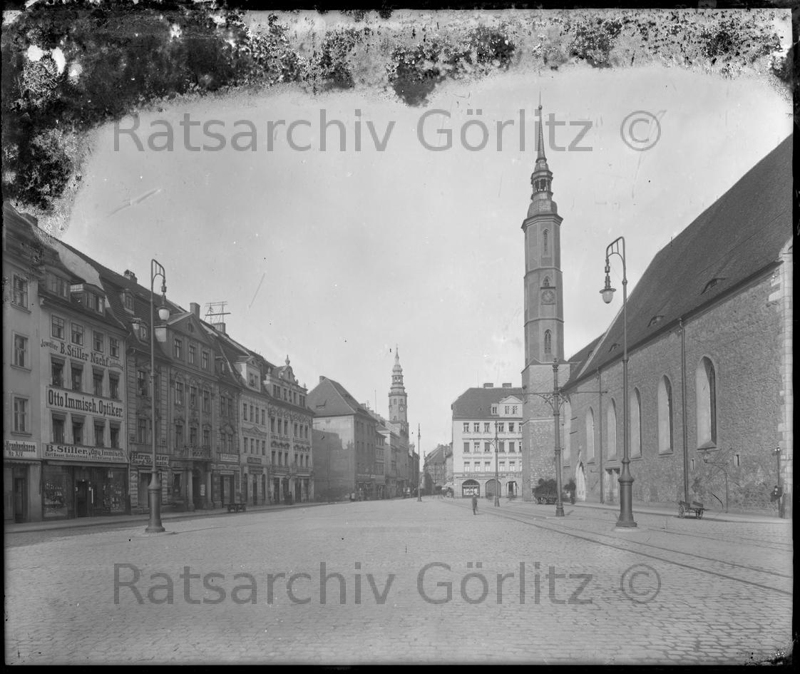 Blick über Obermarkt, Dreifaltigkeitskirche, Haus von Optiker Otto Immisch, Kirche